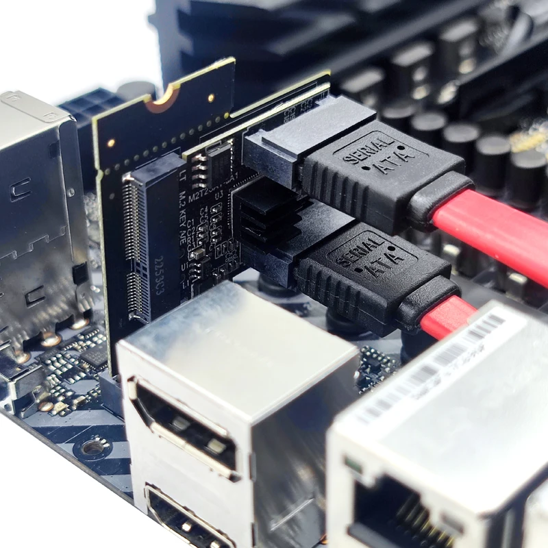 Esta tarjeta adaptadora puede cambiar 2 interfaces SATA a través de la ranura M.2 (tecla A + E) del host del PC, Y el usuario puede conectar 2 unidades de estado sólido SSD o discos duros mecánicos con interfaces SATA al mismo tiempo a través del cable de datos SATA.