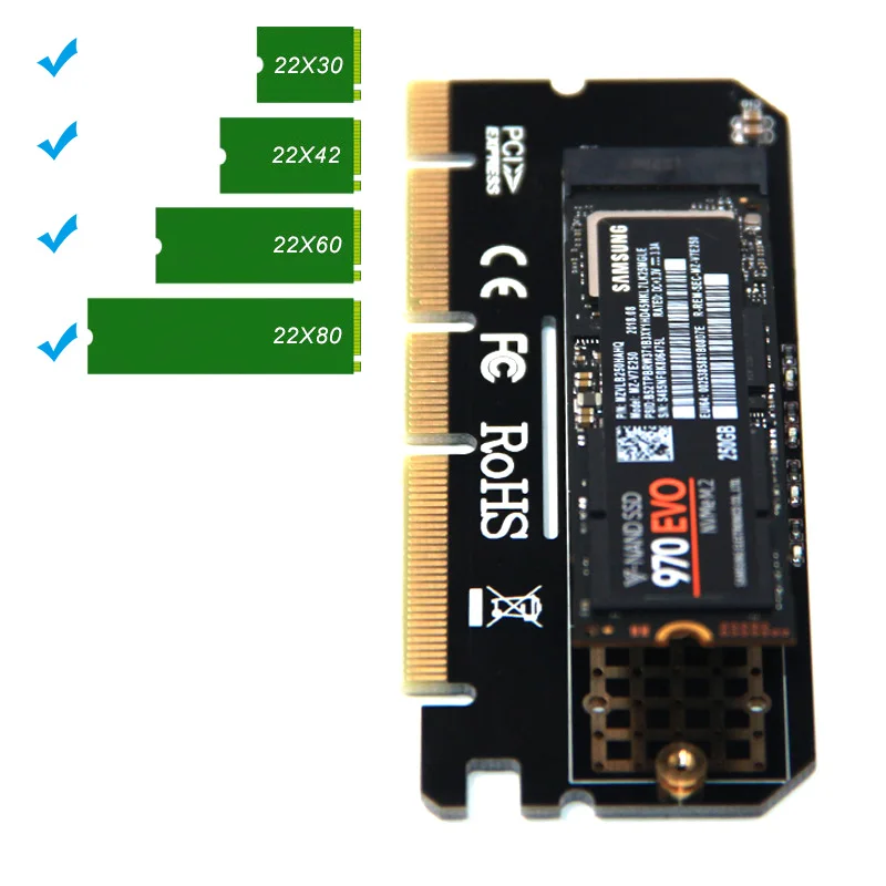 Comprar Adaptador M.2 SSD a PCIE X16 3,0 con tarjeta de interfaz LED M Key Suppor PCI Express 3,0x4 para NVMe 2230-2280, tamaño m.2 SSD