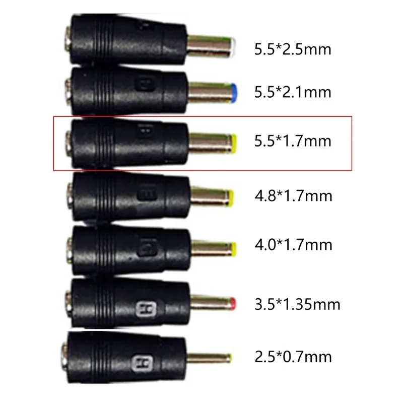 Comprar Adaptador macho a hembra de corriente continua, Conector de 2,5x0,7mm, 3,5x1,35mm, 1,7mm x 4,0, 5,5x2,5mm, 5,5x2,1mm, 5,5x1,7mm, 4,8x1,7mm