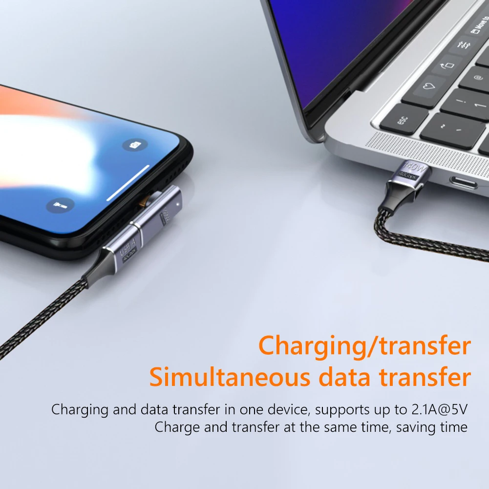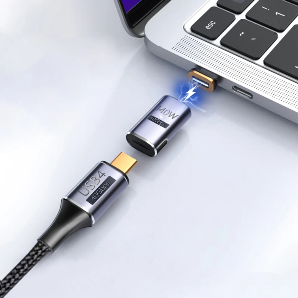 Conector de cargador PD 140W 3 en 1 Convertidor de carga de 40Gbps 8K 120Hz Convertidor magnético de carga rápida Aleación de titanio para Notebook