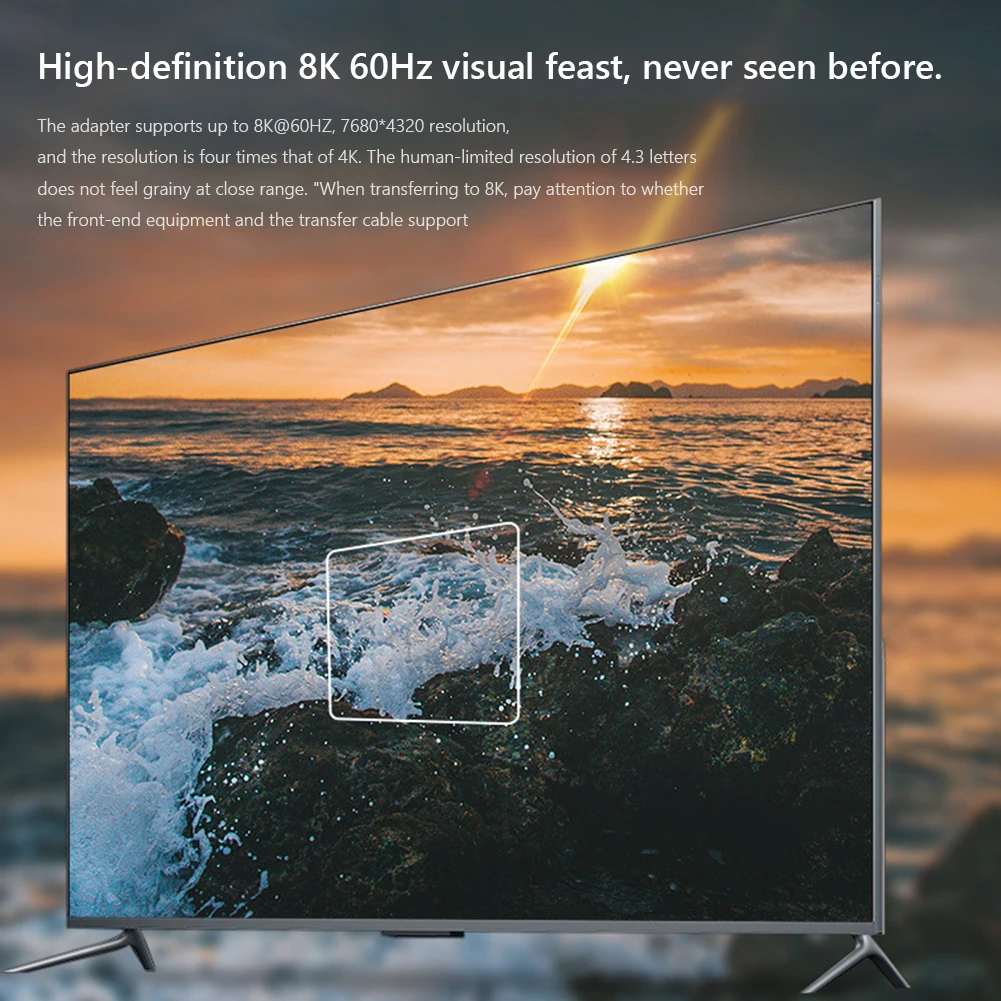 3. Transmisión de alta velocidad:Transmisión DE DATOS DE 40Gbps, carga y transmisión de datos al mismo tiempo, ahorrando más tiempo y mejorando la eficiencia del trabajo. Soporte máximo del Adaptador 8K @ 120Hz 7680*4320 de resolución, y la definición es el doble que la de 4K. Al transferir a 8K, preste atención a si el dispositivo frontal y el cable transferido lo admiten.