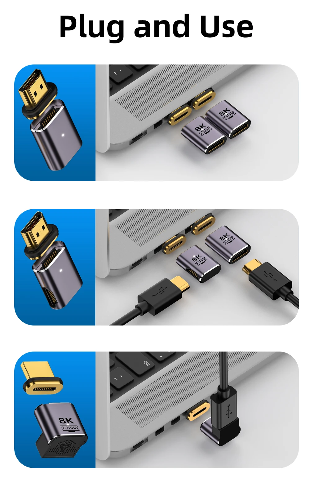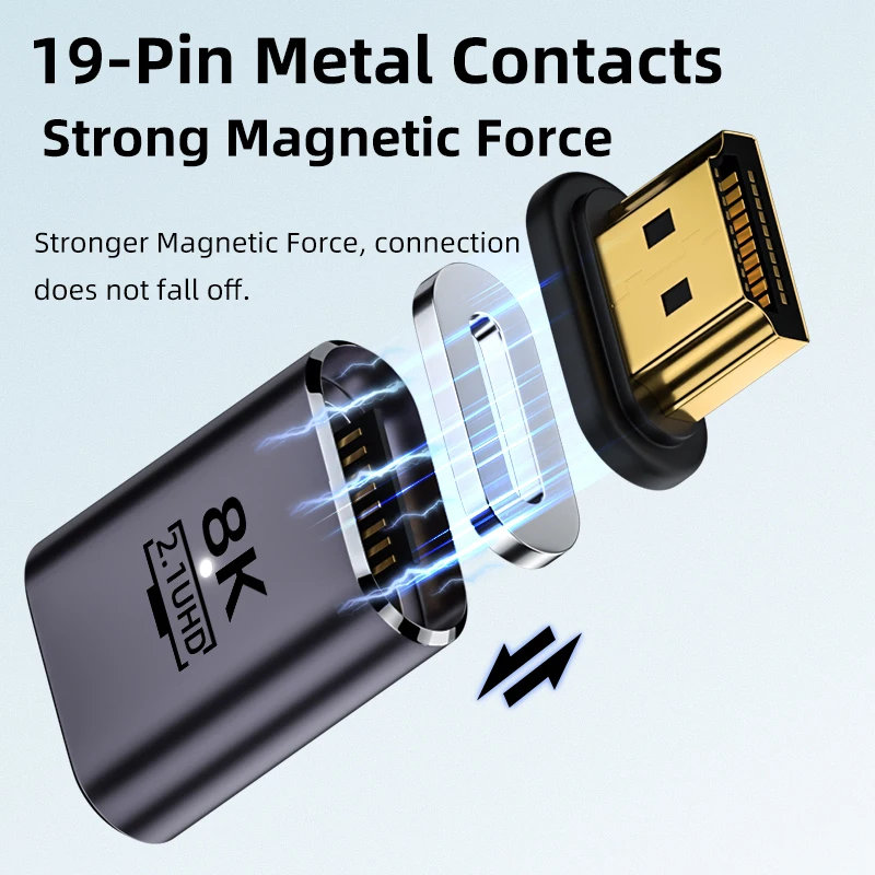 Convertidor de adaptador magnético macho a hembra compatible con HDMI 2,1, Conector de extensión de 90 grados 8K 60Hz para ordenador, caja inteligente, Monitor, proyector de TV