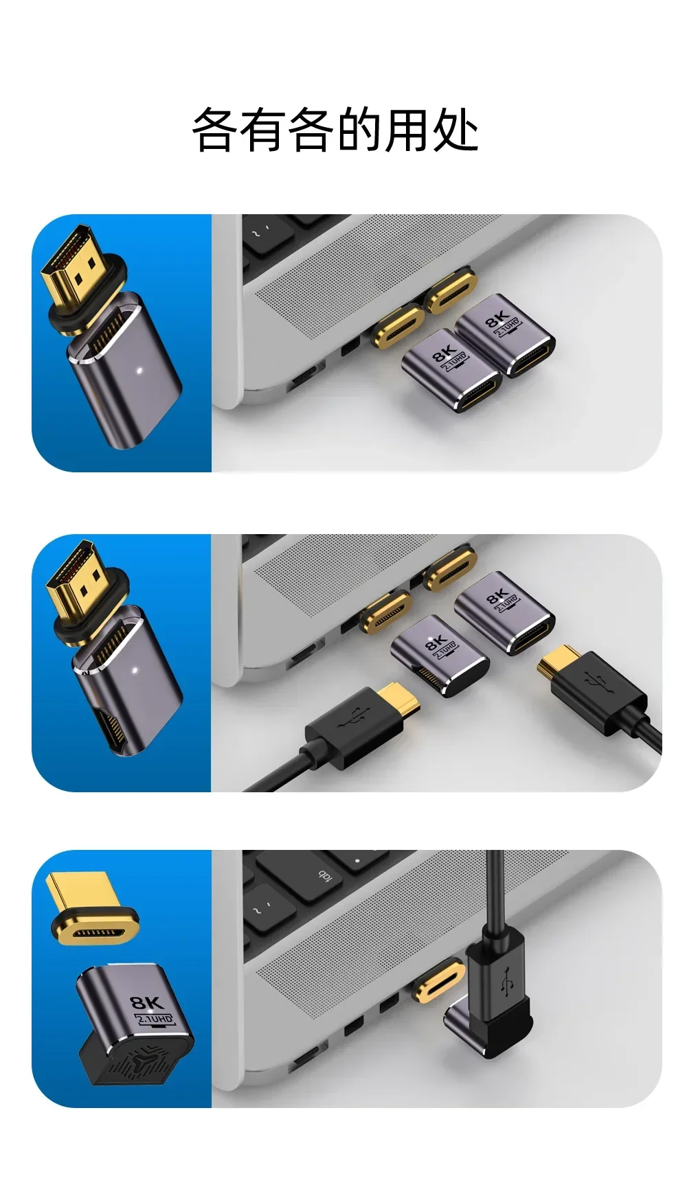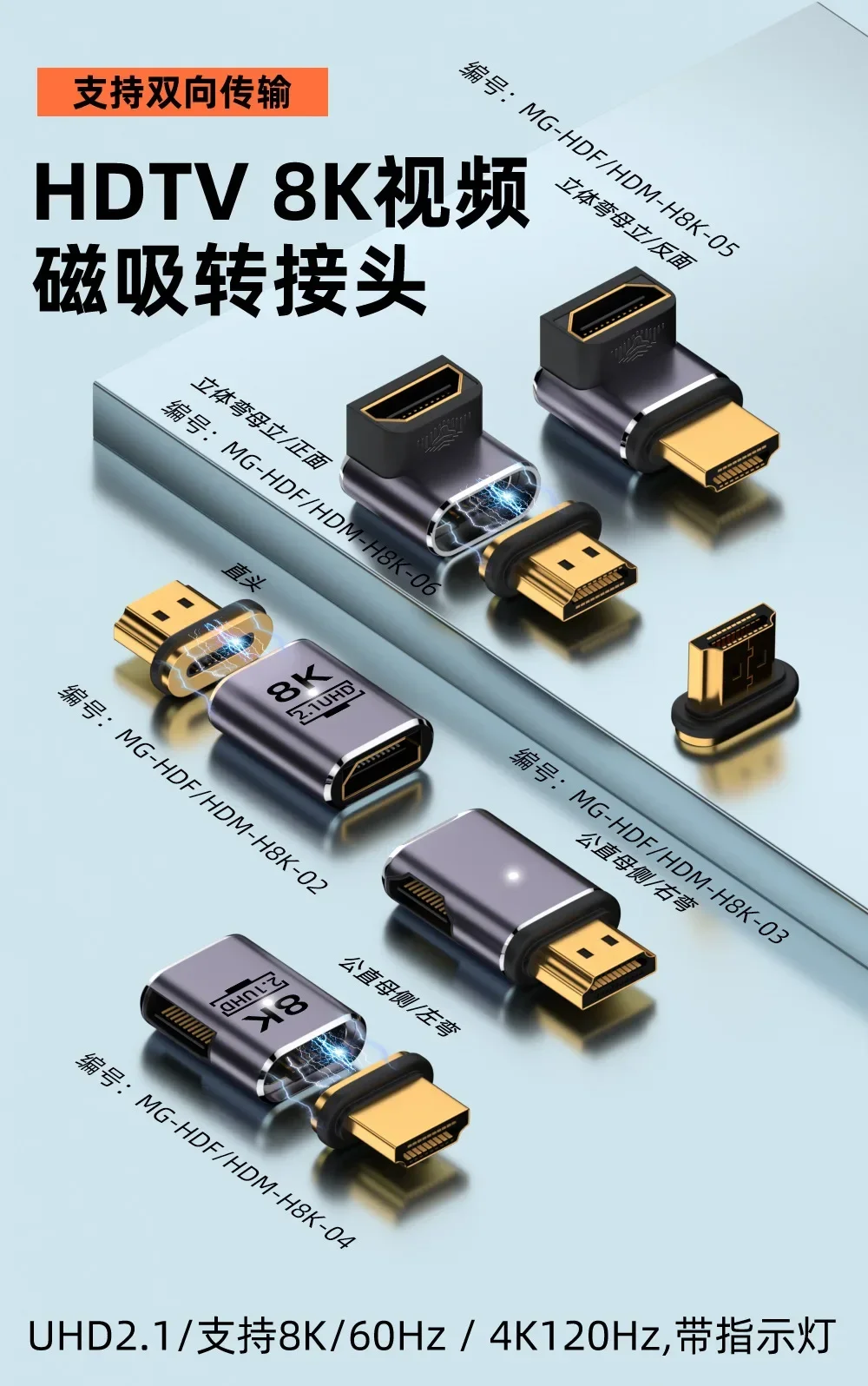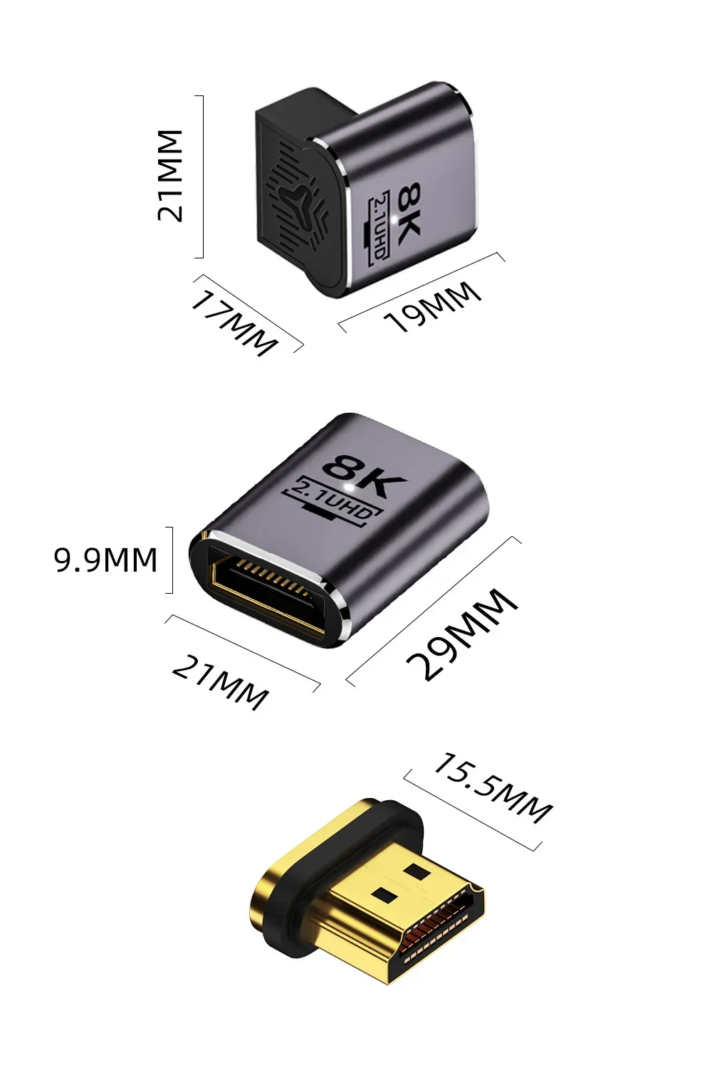 Codo compatible con HDMI 2,1 adaptador magnético macho a hembra para TV Box PS5 USB HUB de alta velocidad 8K/60Hz 4K/120Hz 48Gbps Cable eARC