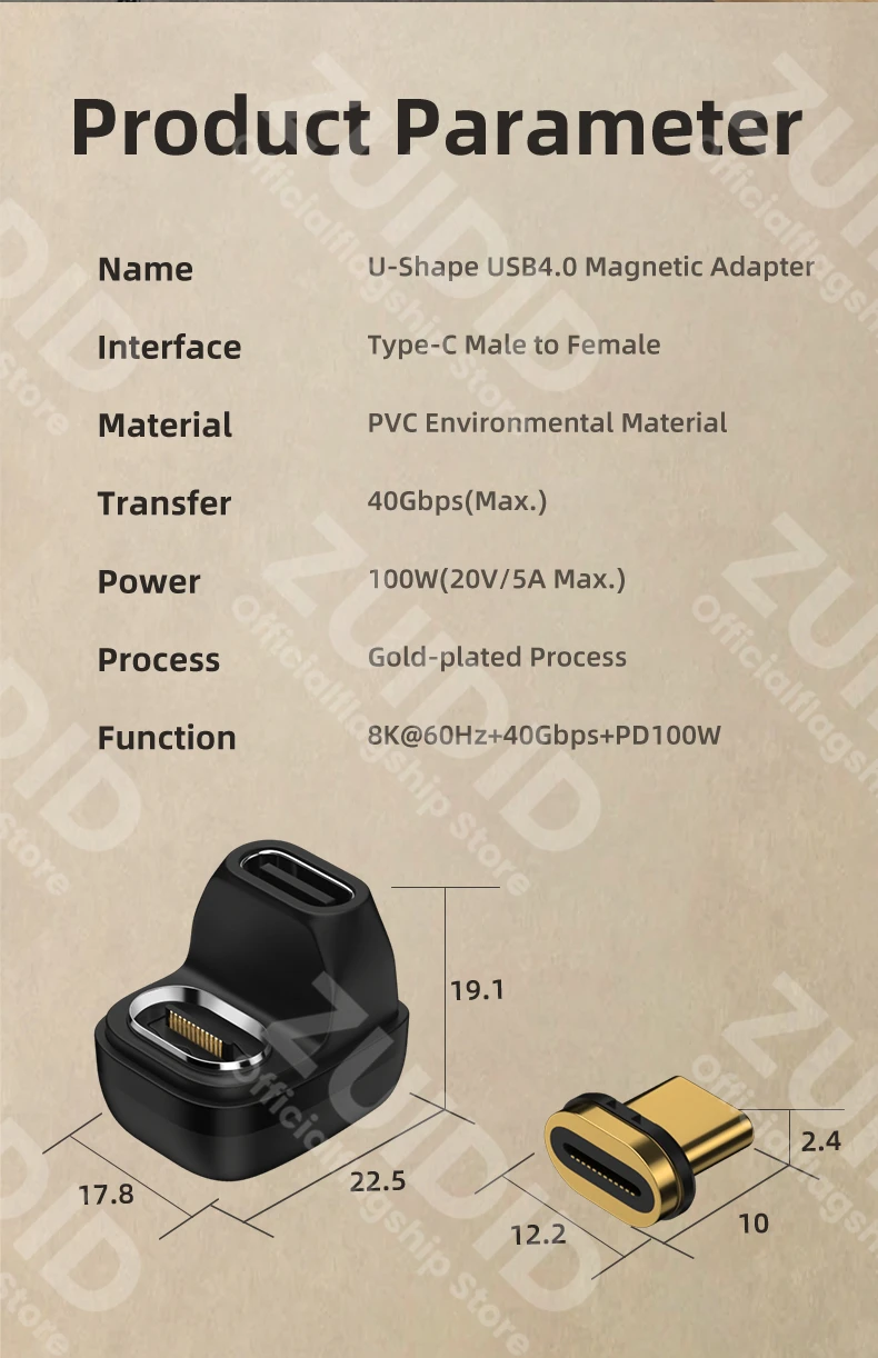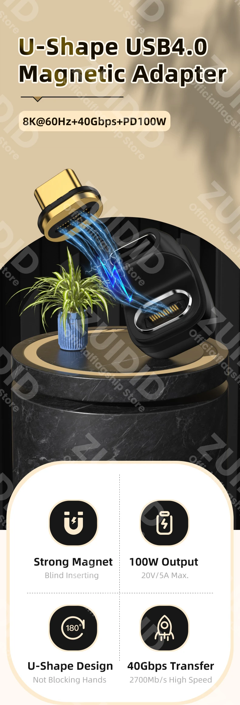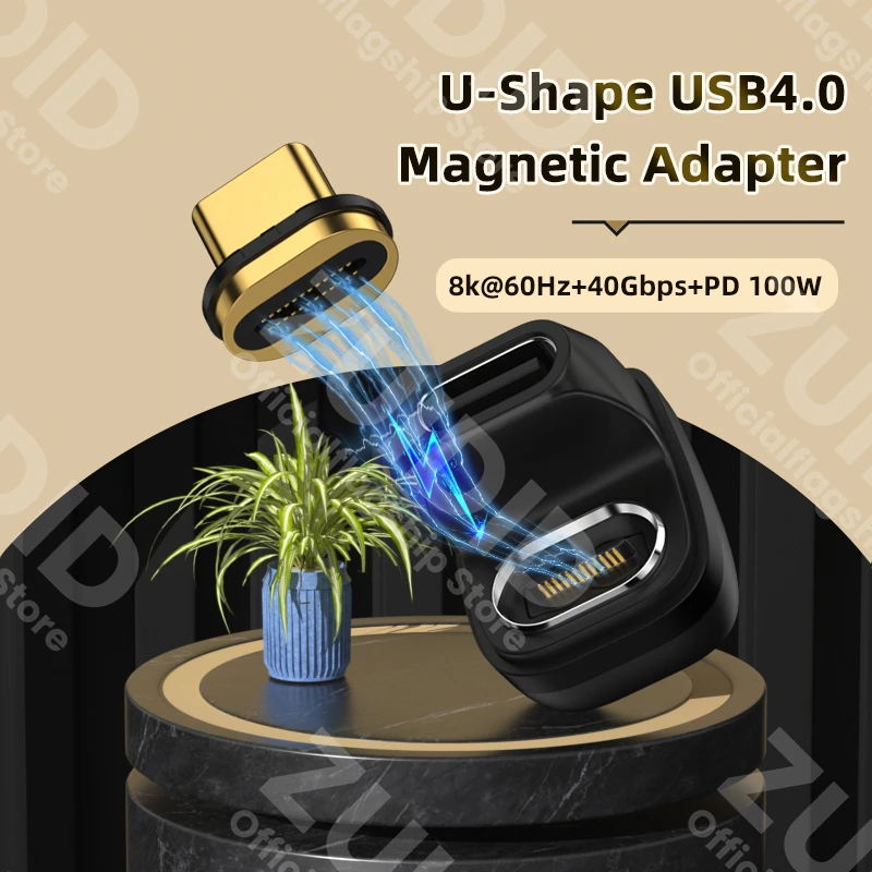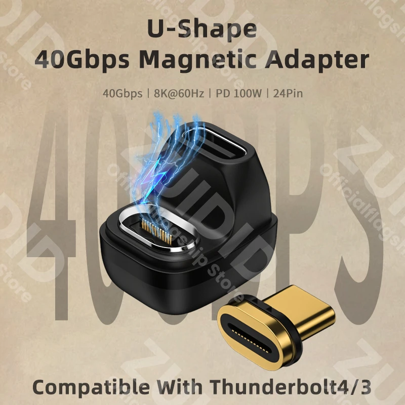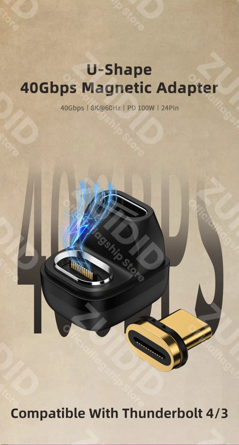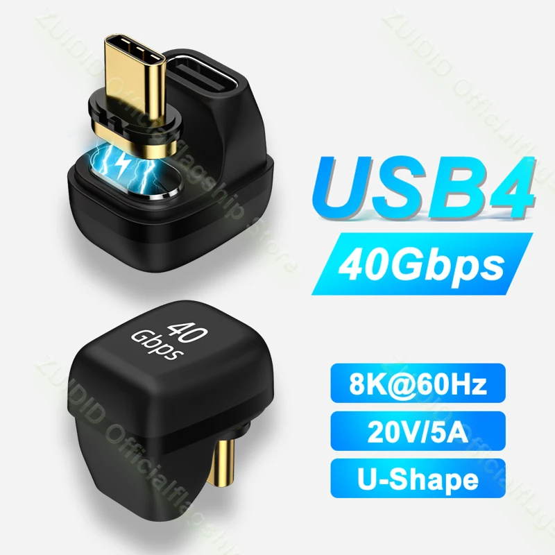 Comprar Adaptador magnético en forma de U Thunderbolt3 USB4.0 40gbps USB C 100W convertidor magnético de carga rápida 8K @ 60Hz adaptador de datos USB C