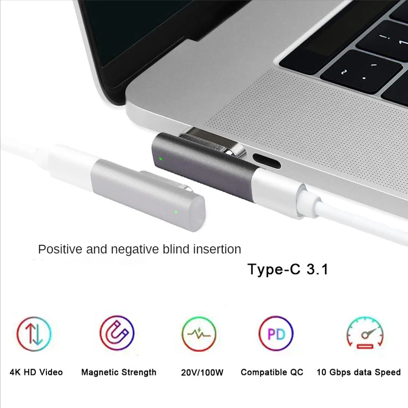 Comprar Adaptador magnético USB C 100, convertidor de carga rápida, PD, 3,1 W, 20 pines, 4K, 10Gbp/s, transmisión de datos de vídeo, tipo C