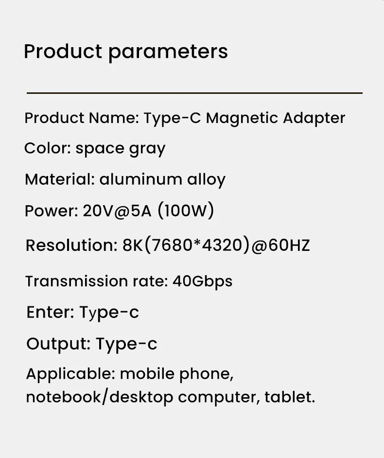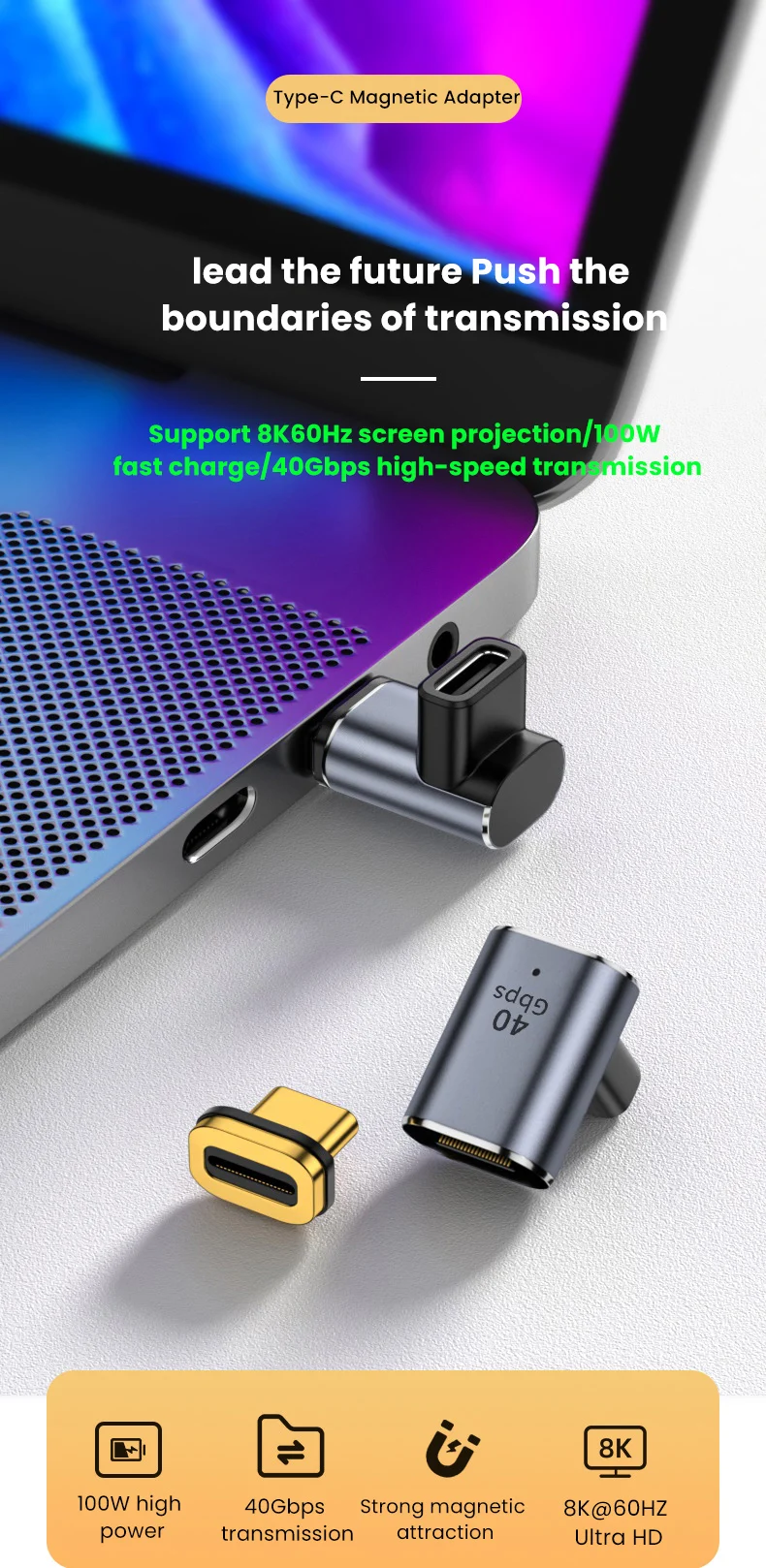 Comprar Adaptador magnético USB tipo C de 24 Pines, conector PD de 100W, convertidor de carga rápida para Thunderbolt 3, MacBook, iPad Pro Switch