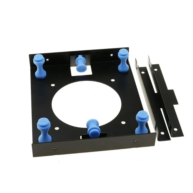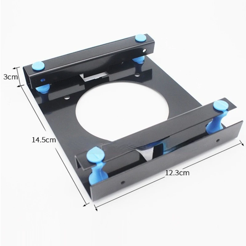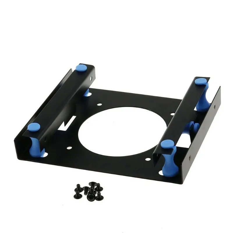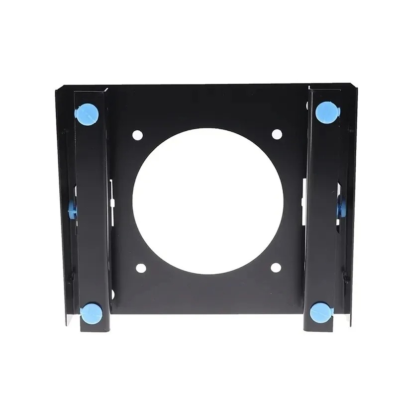 Features--This drive bay mounting bracket kit let your 3.5" drive completely fitted into a 5.25" drive bay.Maxmize the interanal spece of your computer case for efficient usage.--Supports any computer case with an available 5.25" drive bayShock absorption design, protecting and prolonging life of hard drive--Reduce mechanical noise and working temperaturesupports a 80mm fan installation( fan does not include),optimum heat radiation effect for HDD Classic black color, easy match with any computer caseColor: Blue+BlackMaterial: MetalPackage includes:-5.25" holding bracket 1 piece- 3.5" hard disk drive rack 2 pieces- 3.5" HDD screws 8 pieces- Shock Absorption Screws 6 pieces