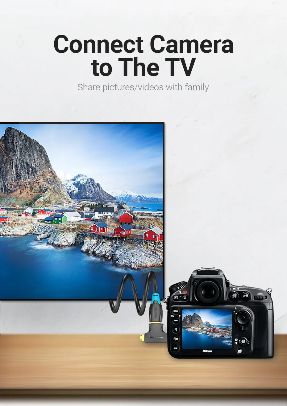 Conecte la tableta/cámara con dispositivos de visualización Mini o Micro HDMI a HDMI