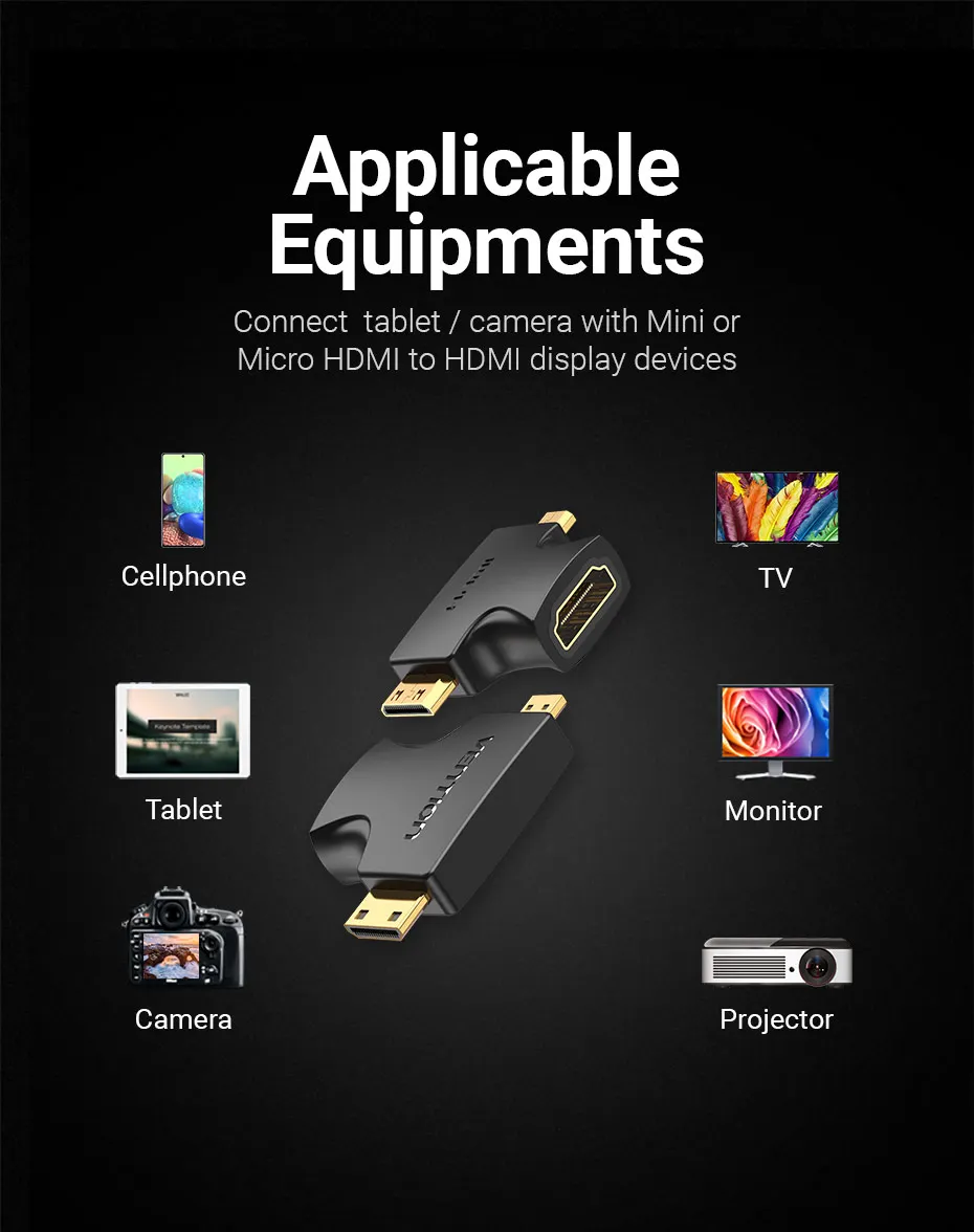 Comprar Adaptador Micro HDMI Vention Micro Mini 2 en 1 convertidor de conector de Cable macho a hembra para cámara TV proyector Mini adaptador HDMI
