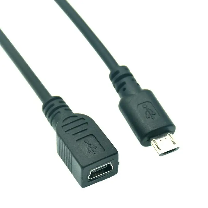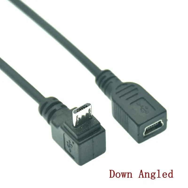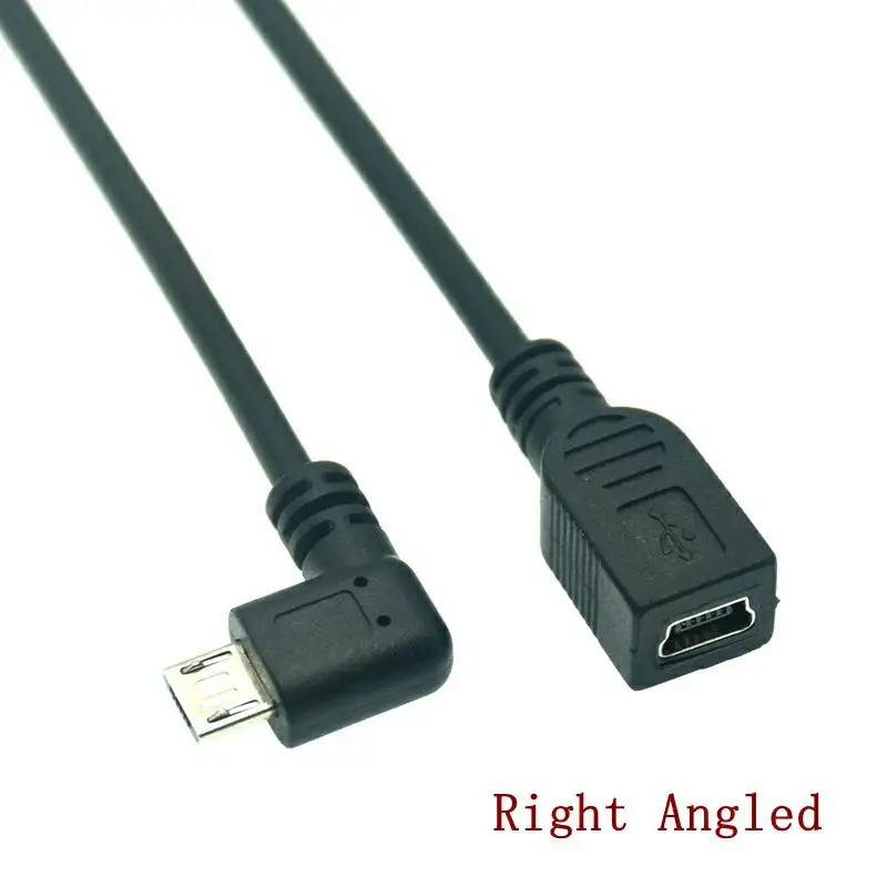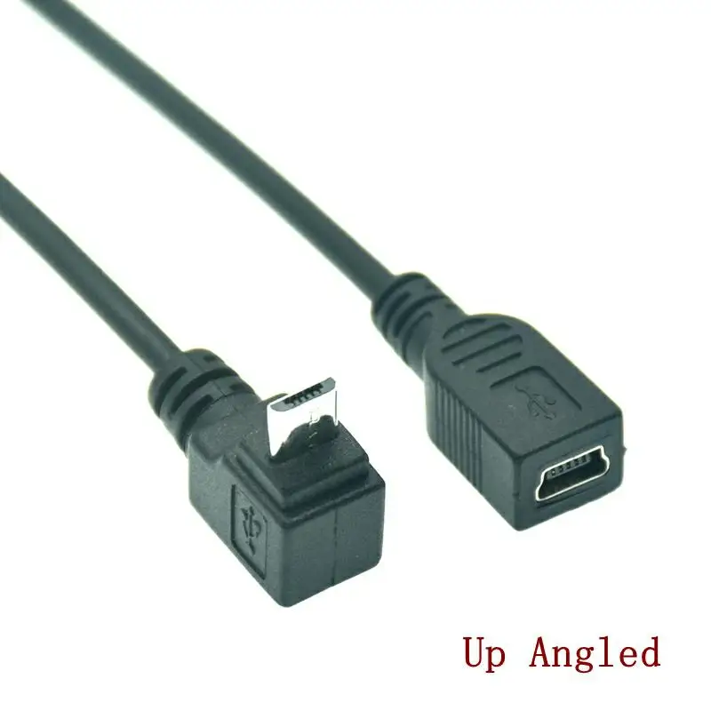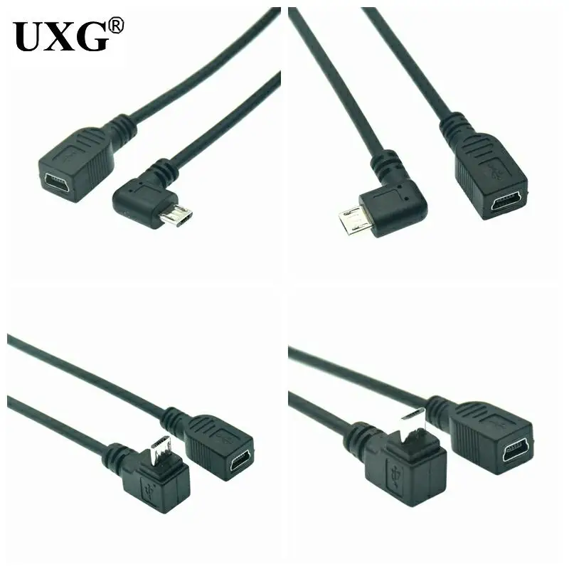 Comprar Adaptador Micro macho hembra a Mini USB, convertidor de Cable de cargador de datos, arriba, abajo, derecha, izquierda, 25cm, 90 grados, 4x
