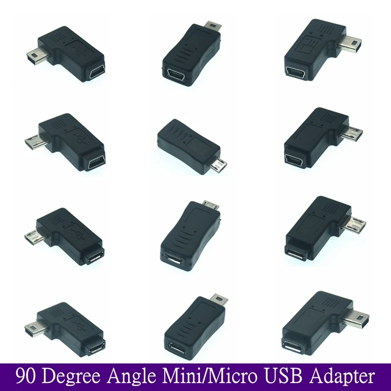 Comprar Adaptador Micro USB macho hembra a Mini USB hembra, Adaptador convertidor de conector para teléfonos móviles MP3, ángulo izquierdo y derecho de 90 grados