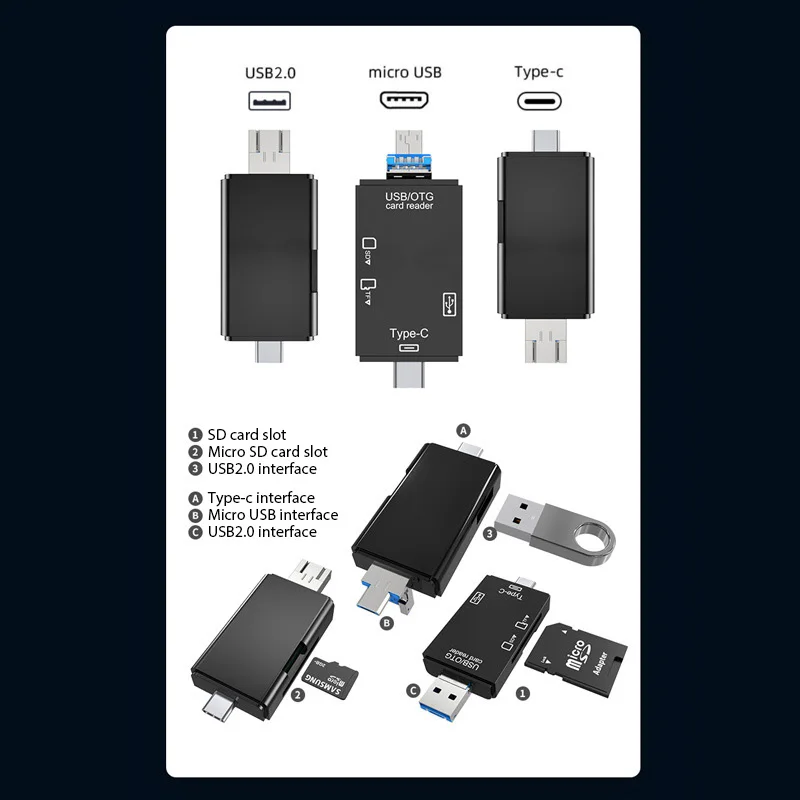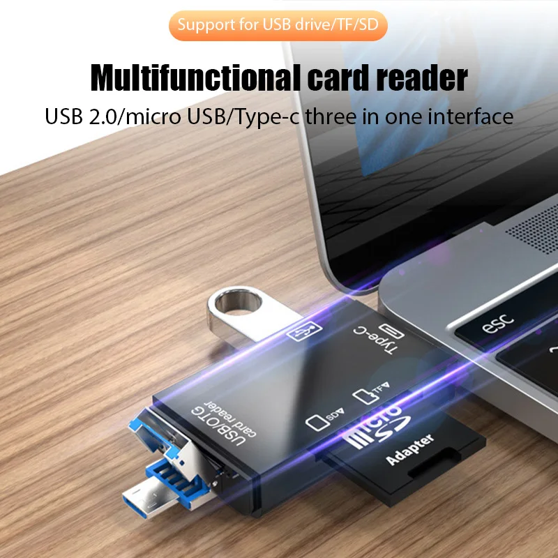6 en 1 OTG multifunción USB 2,0 tipo C adaptador Micro USB para PC portátil accesorios TF/SD lector de tarjetas de memoria inteligente unidad Flash