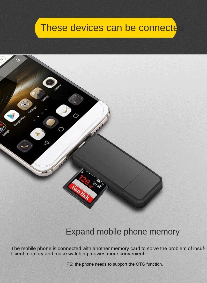 6.Puede ver la mayoría de los formatos de archivos convencionales. Introducción del producto: conéctese a la computadora a través de TYPE-C, realice transmisión de datos en tarjeta SD/TF, escritura y expansión USB3.0.Admite la función OTG del teléfono móvil, vea los datos en la tarjeta del teléfono móvil al mismo tiempo, transmite bidireccional, reproduce vídeo, etc.