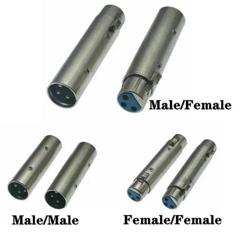 XLR 3-Pin Audio Speaker Microphone Mic Adapter Female to Female,Female to Male,Male to Male connectors Description Description:1.XLR Female to male adapter can be used to convert audio interface XLR Female to male 3 pin Female output.2.Compact and convenient design, metal plug, good contacts, stable signal transmission, convenient and durable.3.Zinc alloy material, sturdy die-cast housing, strong pressure resistance and oxidation resistance, ensuring stable transmission.4.Can be applied on microphone connections/audio electronics, amplifiers and cabling applications. Application:Another one of those adapters that every audio geek needs to have in their toolbox. XLR Adapters for Pro Audio use. Great for mixers, microphones, amplifiers, EQ, rack gear, keyboards, guitars, electric piano, electric drums etc. Specification:Product Name :XLR AdapterMaterial :Zinc AlloyInput and Output Plug Pin Quantity :3 pinType 1:3-Pin XLR Female to FemaleType 2:3-Pin XLR Male to FemaleType 3:3-Pin XLR Male to Male Package Includes:1 x XLR 3-Pin Adapter