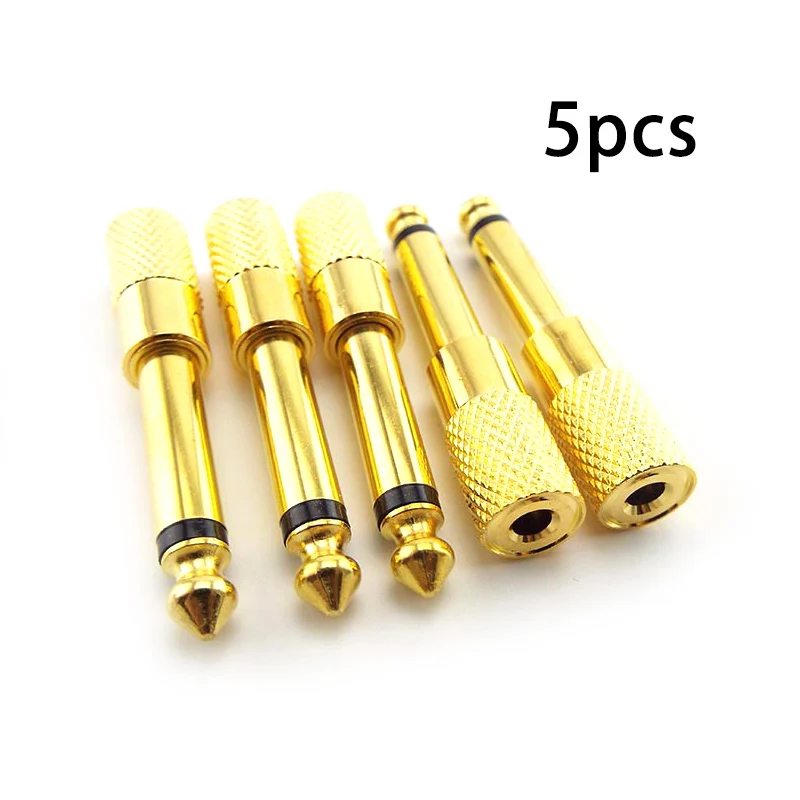 Comprar Adaptador de micrófono de Audio Mono, convertidor de Cable auxiliar chapado en oro, 5 piezas, 6,35mm, 1/4 ", macho a 3,5mm, 1/8", hembra