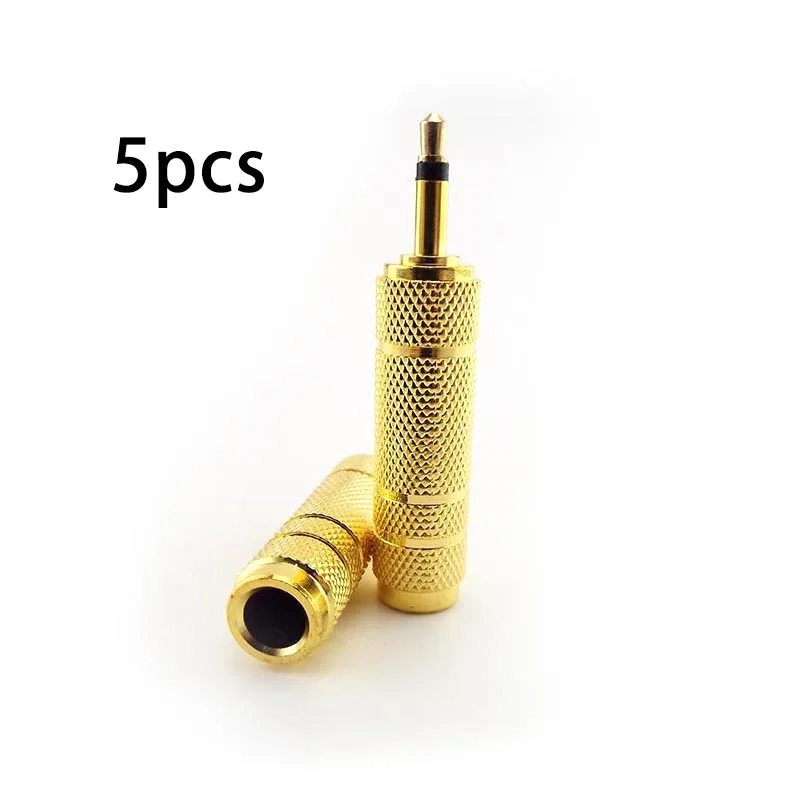 Comprar Adaptador de micrófono de Audio Mono, convertidor de Cable auxiliar chapado en oro, 5 piezas, 6,5mm, hembra a macho de 3,5mm