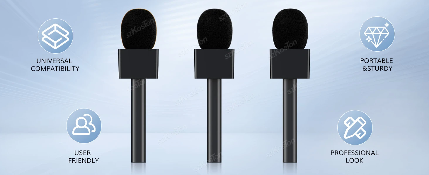 Espumas de parabrisas de primera calidad: fabricadas con materiales de alta calidad, garantizan un ajuste seguro, reducen el ruido del viento y mejoran la calidad de la grabación; Inodoro, no tóxico y sin logotipo para entrevistas sin distracciones.Szkoston