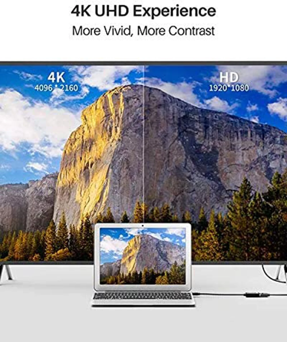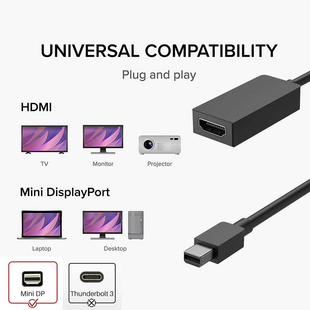 Este adaptador mini dp a HDMI 4K 60Hz es compatible con HDMI 2.0 y capaz de admitir resoluciones de hasta 3840 x 2160 a 60 Hz.