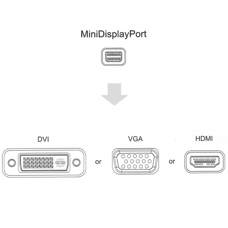 Comprar Adaptador Mini DP DisplayPort Thunderbolt a DVI VGA HDMI compatible con convertidor de conector 3 en 1 para MacBook Surface Laptop TV Monitor