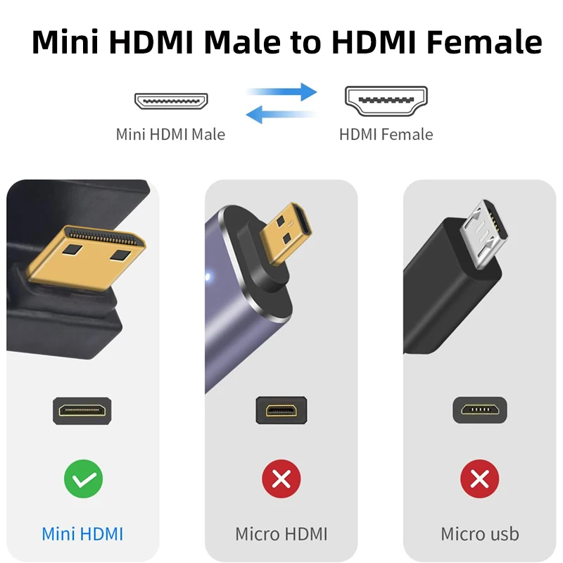 Mini HDMI-compatible Male to HDMI-compatible Female Adapter UP Down Angle 180 Degree 8K@60Hz 2.1 Female Extension Converter