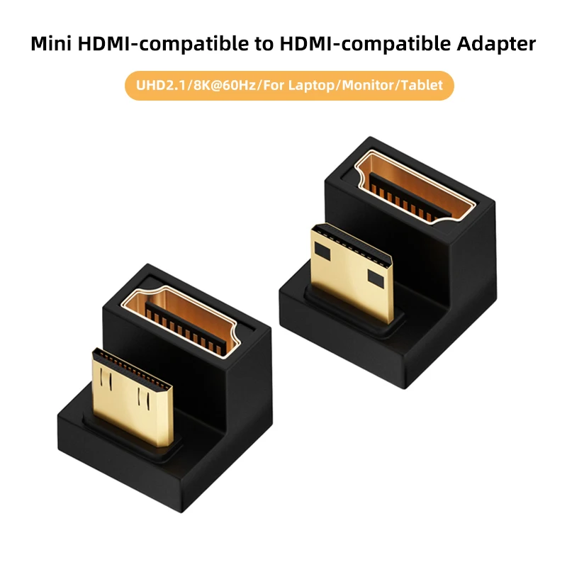 Mini HDMI-compatible Male to HDMI-compatible Female Adapter UP Down Angle 180 Degree 8K@60Hz 2.1 Female Extension Converter