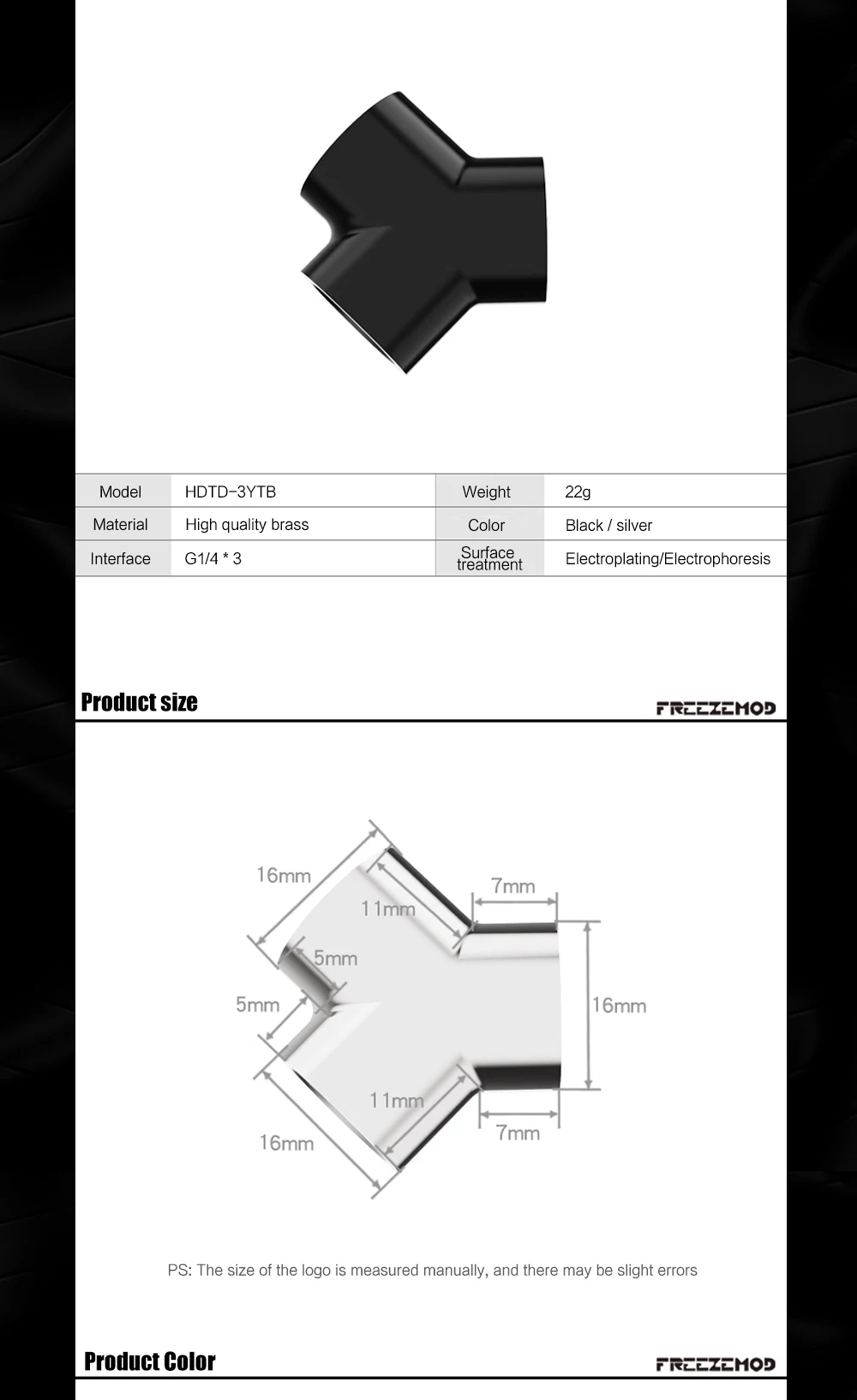 Adaptador de montaje de distribuidor de refrigeración por agua, divisor interior en forma de Y en T G1/4 ''X3, negro/plateado, HDTD-3YTB