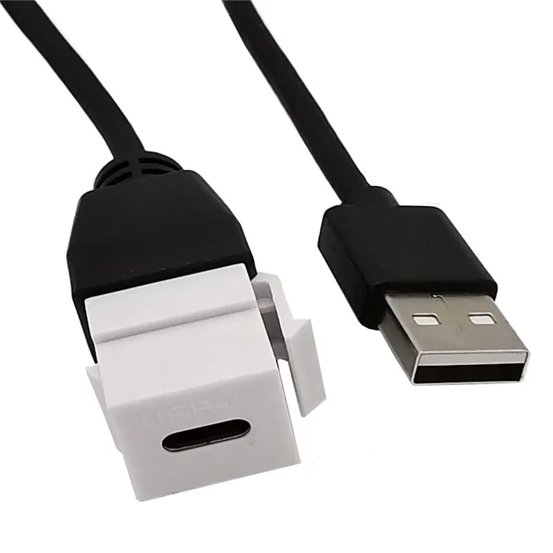 Adaptador de inserción de montaje en panel USB 2,0 V A macho a tipo C hembra para placa frontal de enchufe de pared 0,2 m