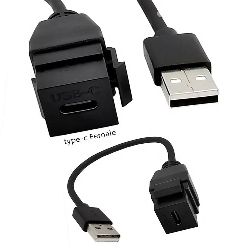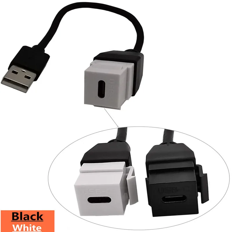 USB 2,0 versión USB tipo C hembra enchufe de cable con panel de hebilla cable de puerto hembra enchufe de pared USB Cable de panel de enchufe directo USB 0,2 m;