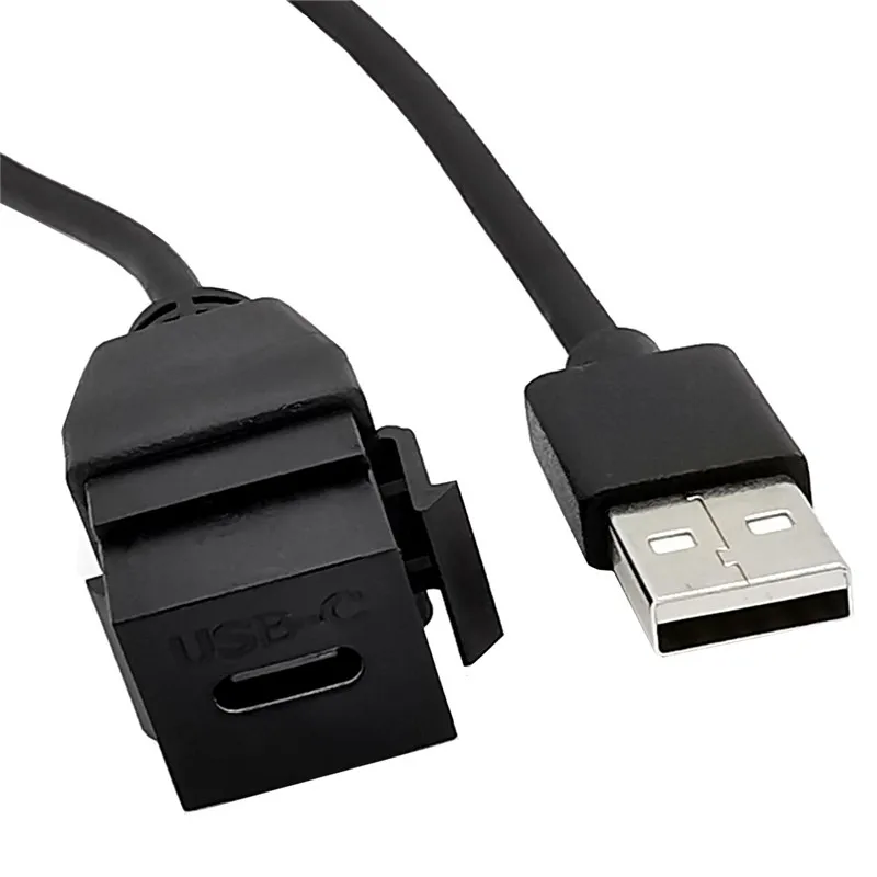 Adaptador de inserción de montaje en panel USB 2,0 V A macho a tipo C hembra para placa frontal de enchufe de pared 0,2 m