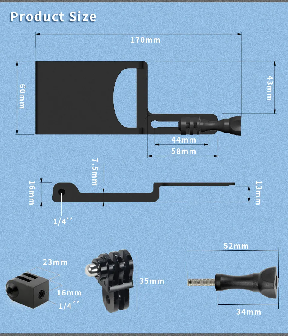 1. Gimbal clamp conversion board for sports camera installation and stabilization to stabilizer;