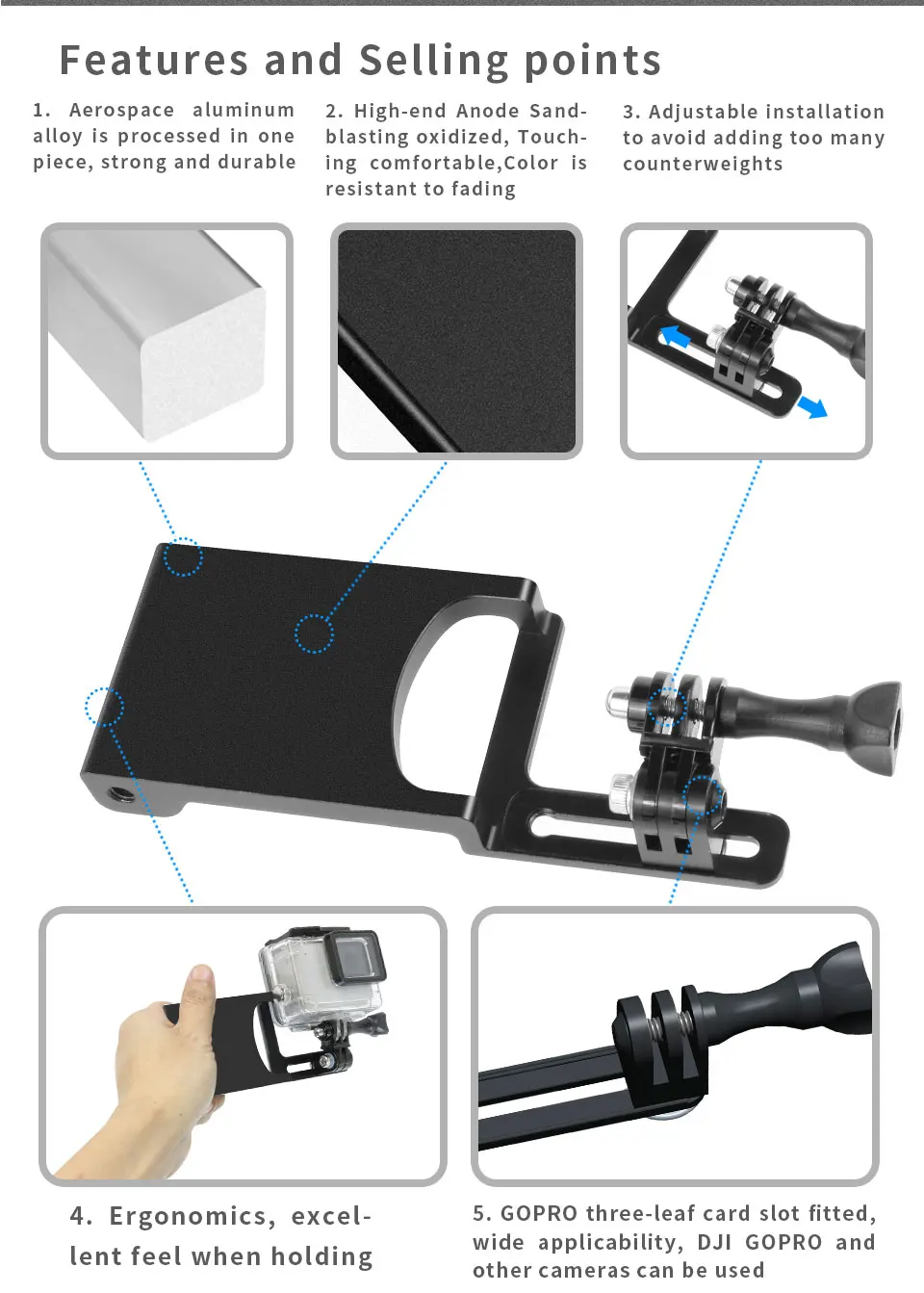 2. High-end anodes are sandblasted and oxidized, which is comfortable to the touch, and the color is resistant to fade;