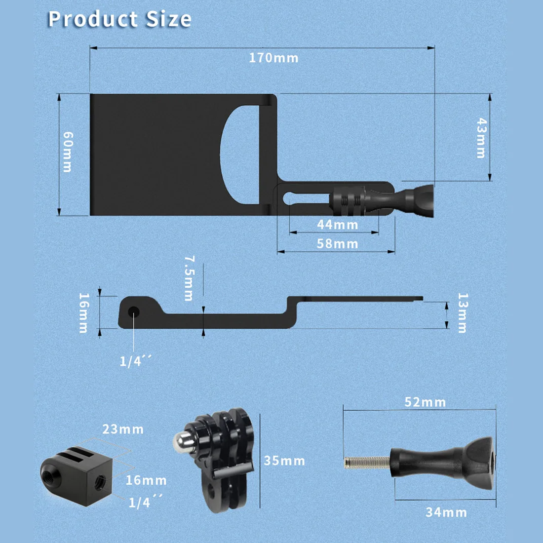 1. Gimbal clamp conversion board for sports camera installation and stabilization to stabilizer;