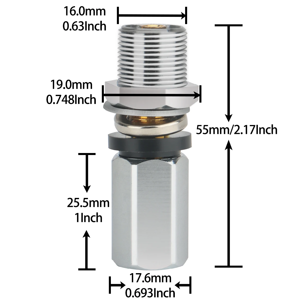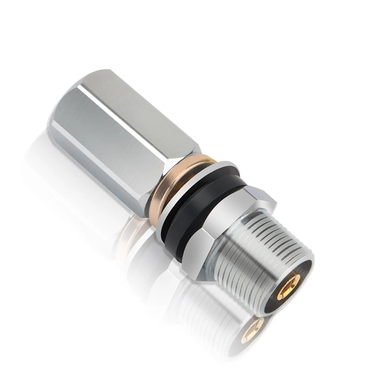 Hecho de material totalmente niquelado de cobre, el excelente material garantiza una conexión fuerte y apretada, no es fácil de romper, para garantizar su durabilidad.La junta negra proporciona un buen rendimiento de aislamiento y evita que la antena entre a tierra en su punto de instalación.Durable y duradero.