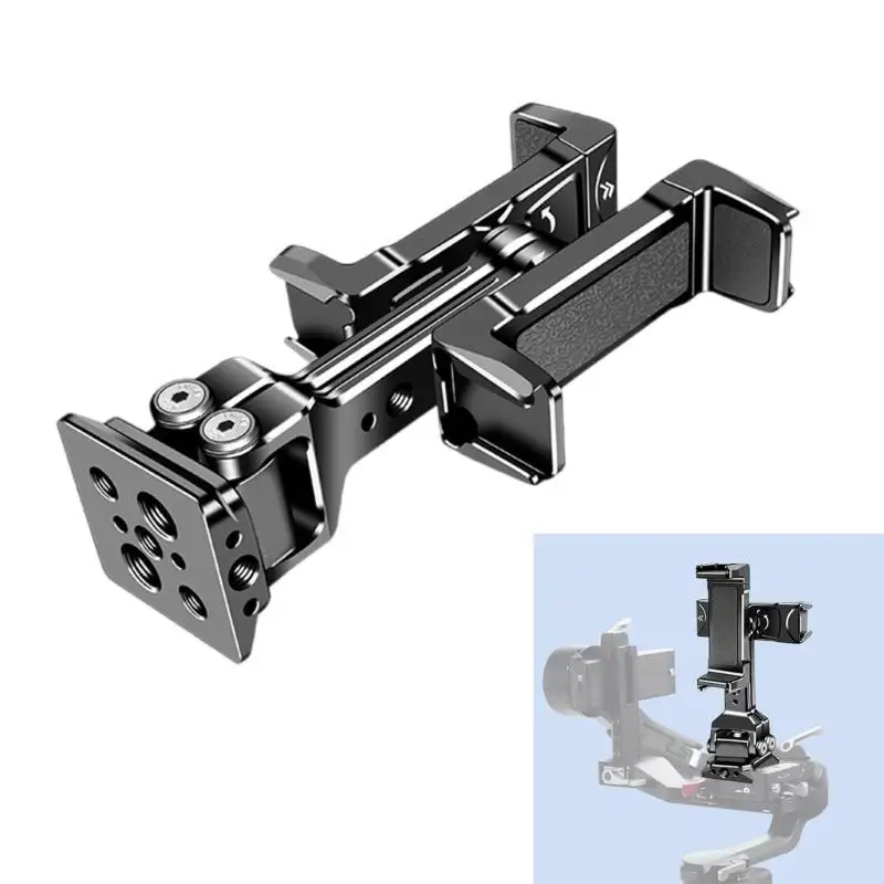 Viene con tres orificios para tornillos estándar de 1/4 de pulgada y para base Arca, para la mayoría de trípodes, monopiés y palos para selfies con un tornillo de 1/4" y para cabezal de trípode Arca.Se adapta a varios equipos y dispositivos con conexión segura para transmisión y grabación estables.