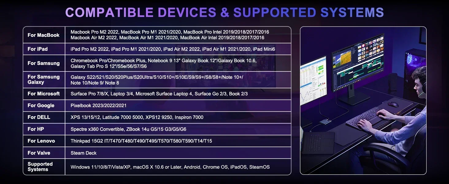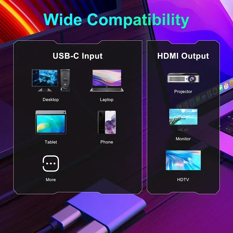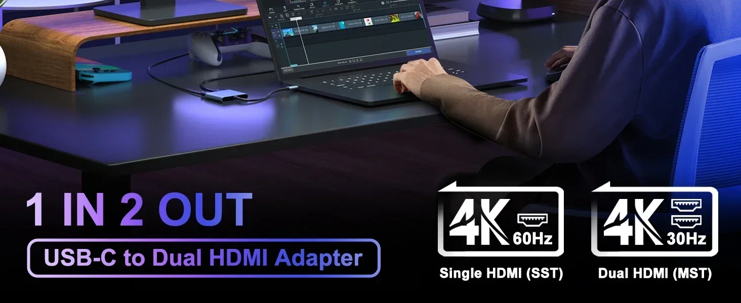 【4k 60Hz】Cuando un solo puerto HDTV está funcionando, la resolución es de hasta 4K@60Hz (3840X2160P@60Hz).Cuando ambos puertos HDTV están funcionando, la resolución máxima admitida está limitada [email protected] un adaptador USB C a HDTV que es compatible con versiones anteriores de 60 Hz para resoluciones de 2K/1080P.Tenga en cuenta: si desea obtener una resolución de 4k, asegúrese de que su dispositivo admita 4k y utilice un cable HDMI 2.0 o mejor.