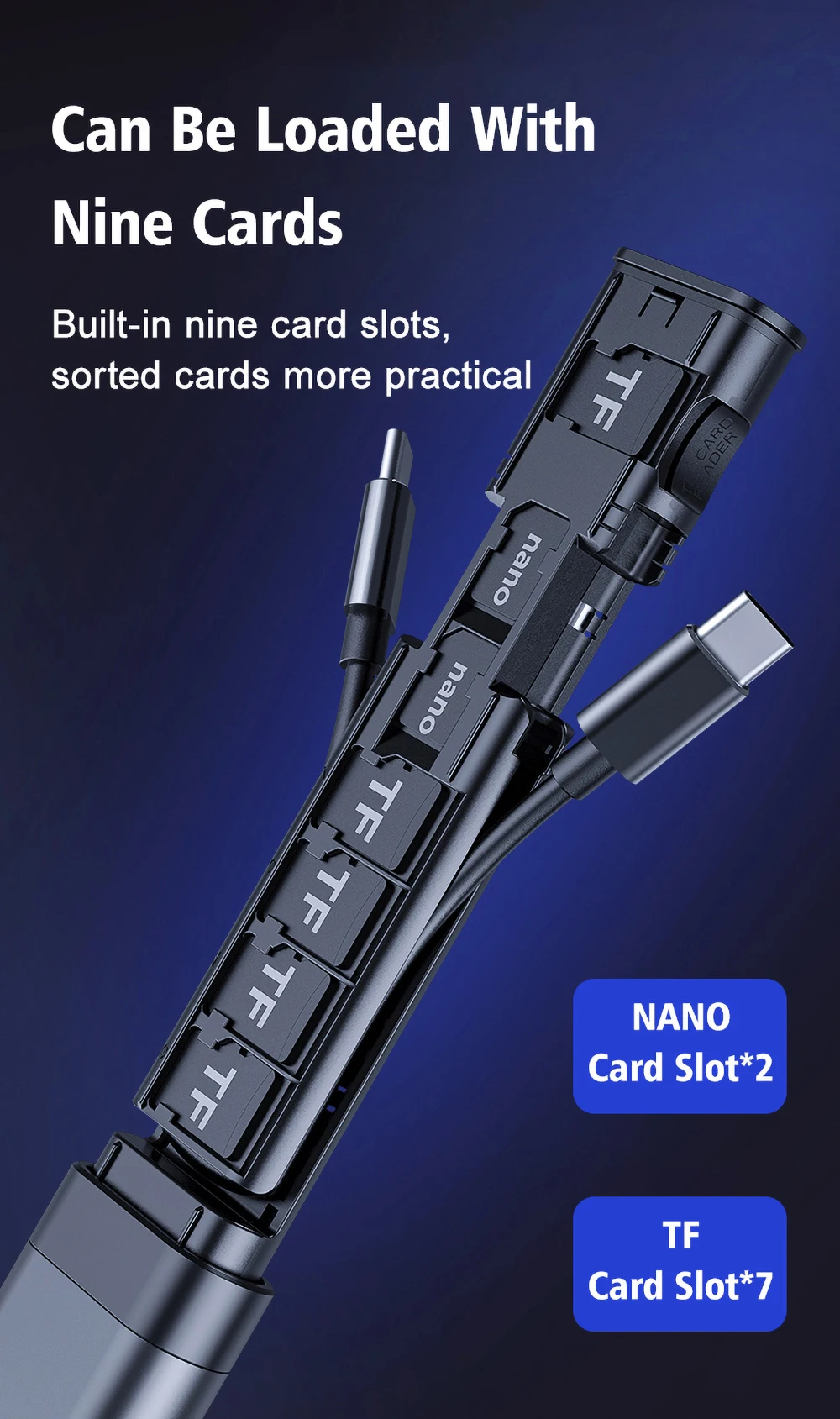 Cuando no hay Internet, no hay acceso al correo electrónico, ¿cómo transferir un archivo a alguien? El palillo multifuncional del cable del Budi puede leer tarjetas de memoria del TF y apoyar el puerto del USB o del tipo C. y al mismo tiempo la ayuda 7 piezas el almacenamiento de tarjeta del TF