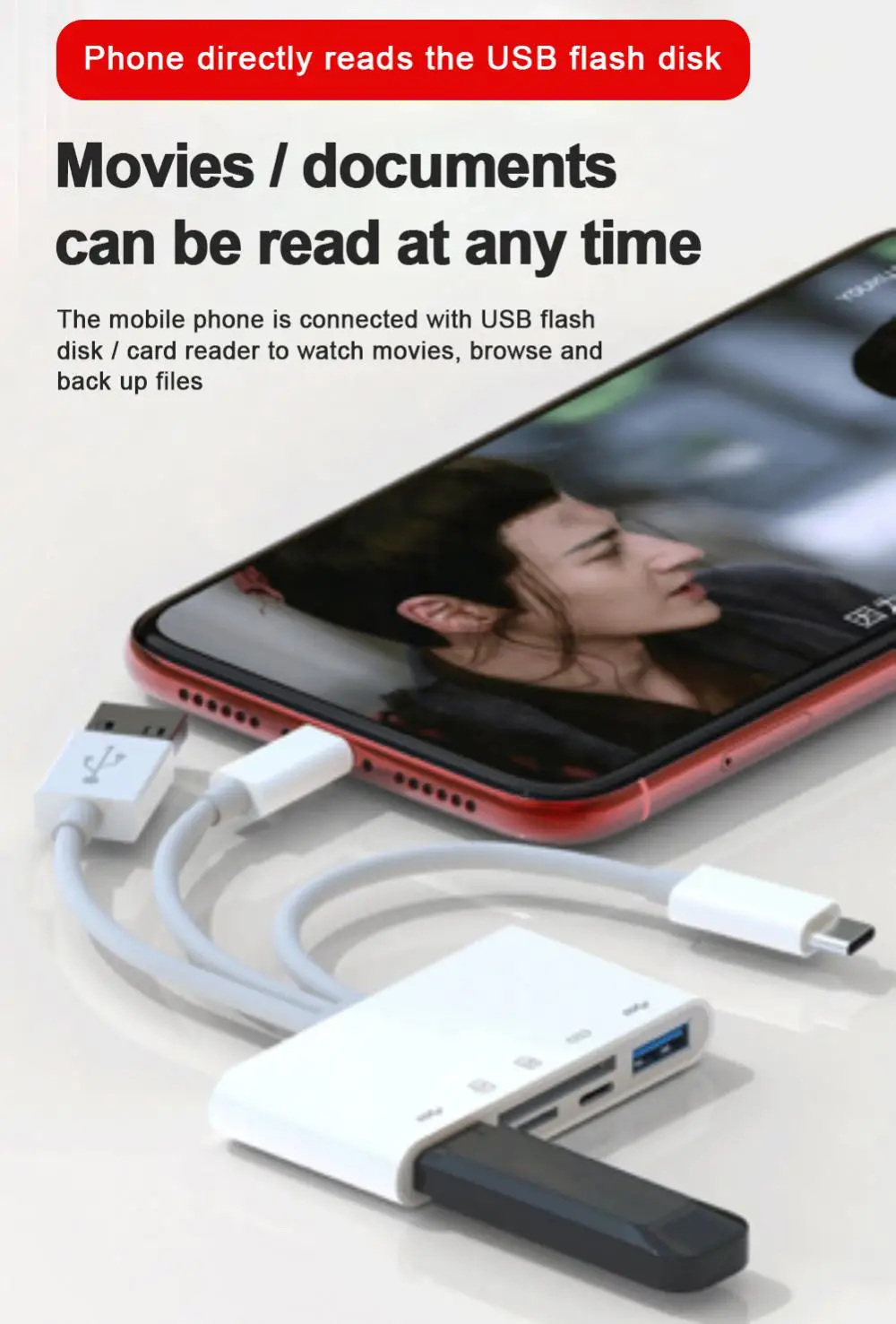 2. 【Lector de tarjetas/disco U externo para teléfono móvil】 El teléfono móvil admite lectura directa del disco U, las películas/documentos se pueden leer en cualquier momento, puede ver películas, explorar y hacer copias de seguridad de archivos.