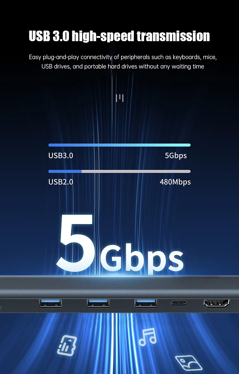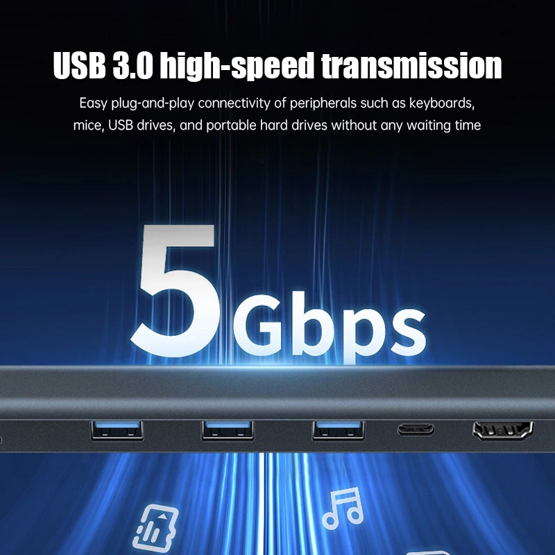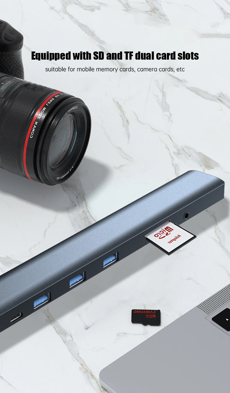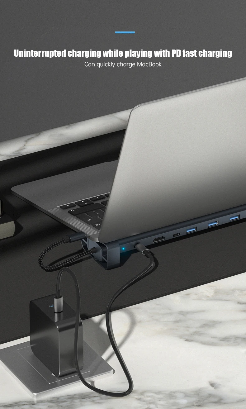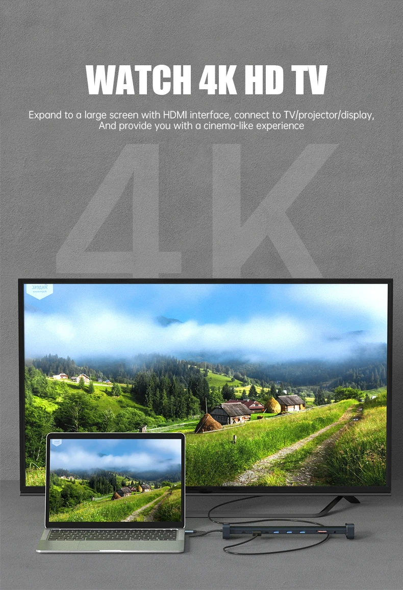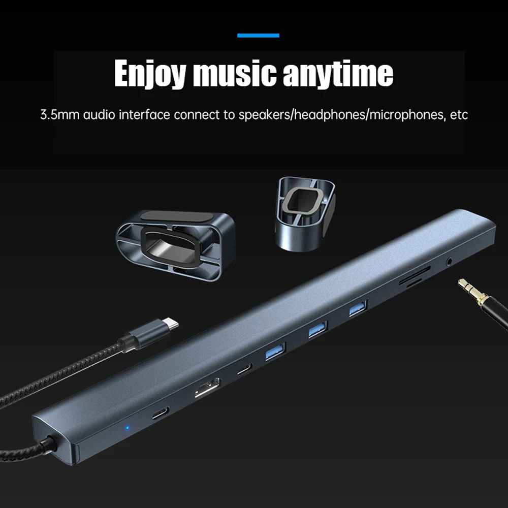 Adaptador multipuerto USB C Hub 10 en 1 Dongle portátil 4K HDMI PD 100W USB 3,0 Gigabit Ethernet RJ45 estación de acoplamiento soporte para ordenador portátil