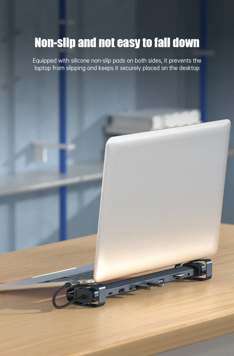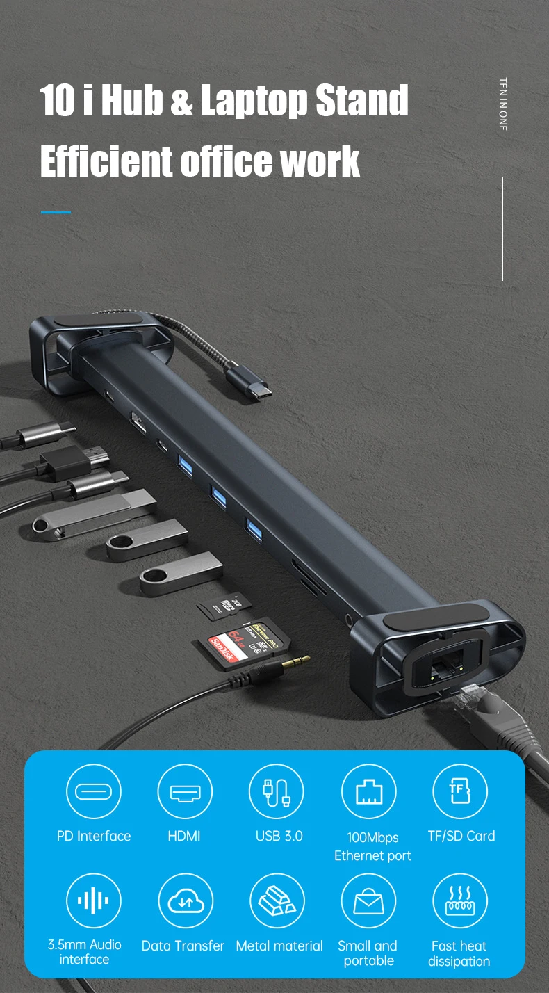 Comprar Adaptador multipuerto USB C Hub 10 en 1 Dongle portátil 4K HDMI PD 100W USB 3,0 Gigabit Ethernet RJ45 estación de acoplamiento soporte para ordenador portátil