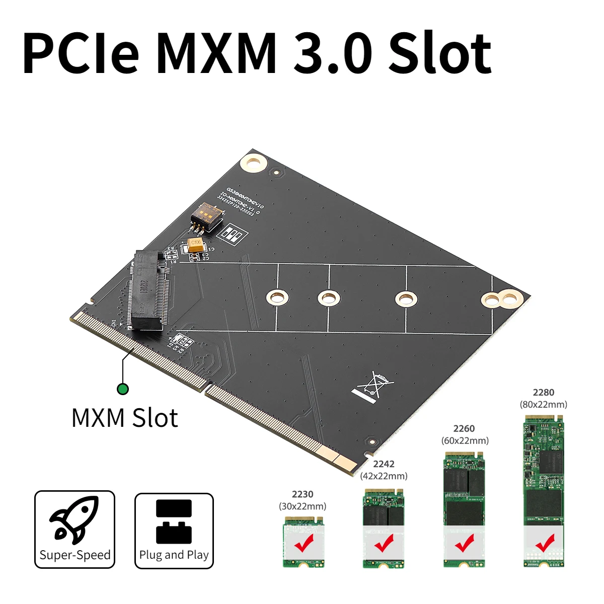 • Convierte M.2 NGFF PCI-e basado en SSD para trabajar en la ranura de bus PCI-e MXM de la placa principal