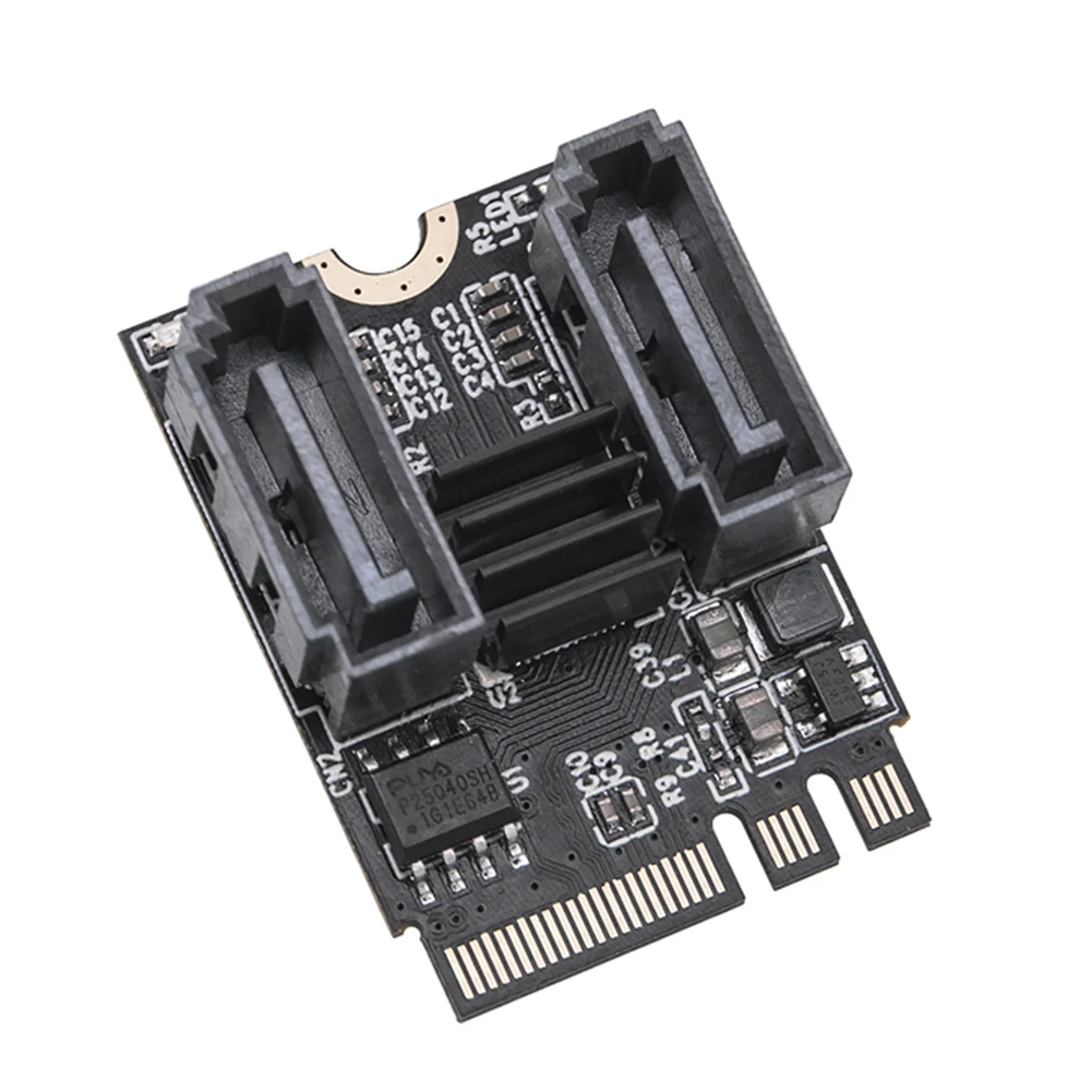 3.Interfaces de expansión:La tarjeta vertical cuenta con dos interfaces SATA 3.0, y cada interfaz admite una velocidad de transferencia de 6 Gbps.Esto le permite conectar dos discos duros SATA o unidades de estado sólido.