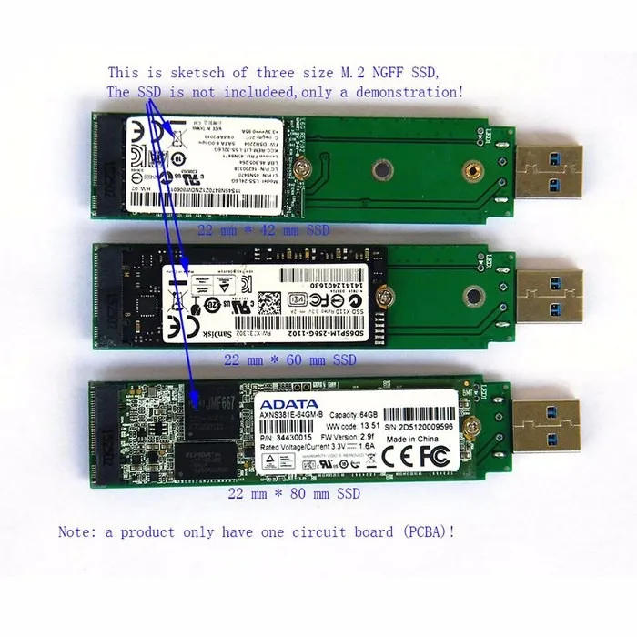 Compatible con 42mm / 60mm / 80mm NGFF M2 SSD funciona como disco Flash, no es compatible con PCI-E NGFF SSD