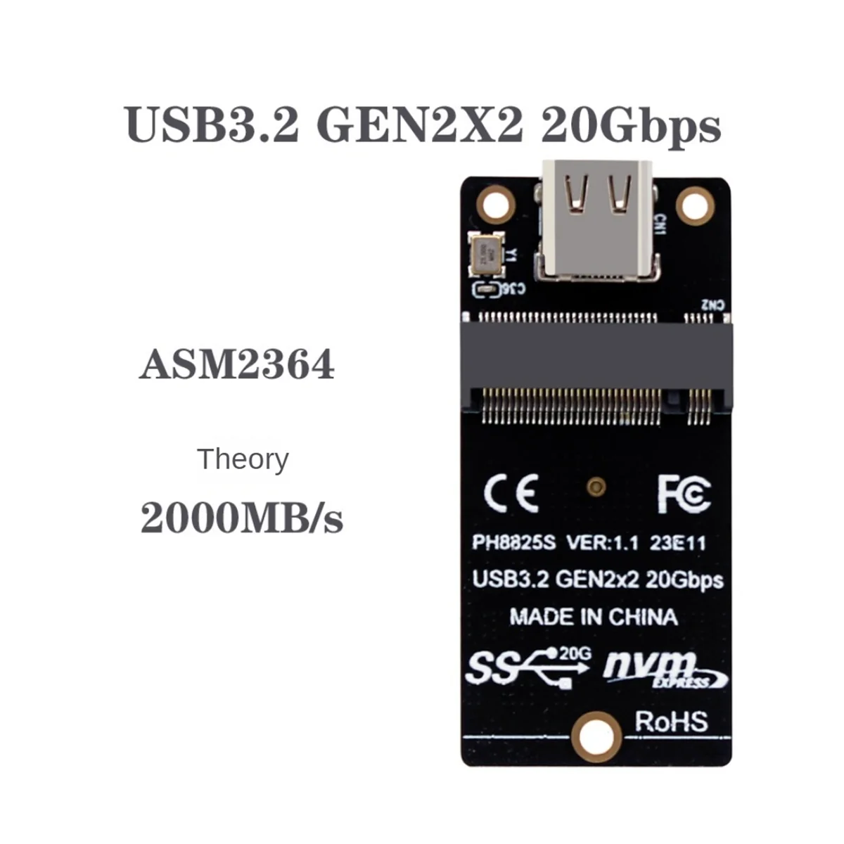Tarjeta adaptadora de carcasa de disco duro M.2 NVMe Type-c USB3.2 GEN2X2 20Gbps