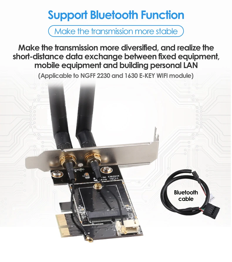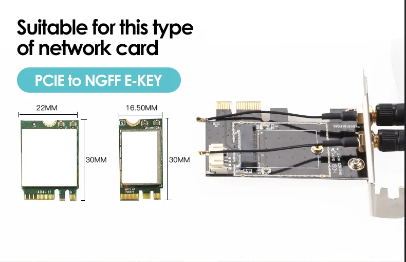 Adaptador NVME PICE-1X a NGFF-Ekey, tarjeta adicional PCIE Notebook, tarjeta adaptadora de tarjeta de red inalámbrica, tarjeta de expansión de componentes de ordenador