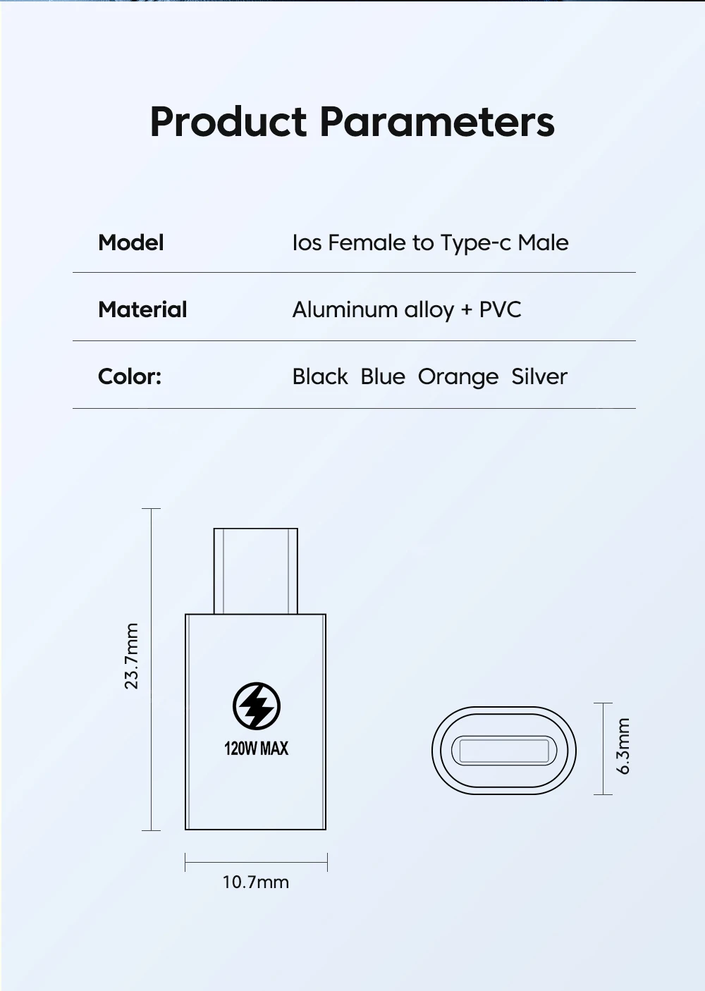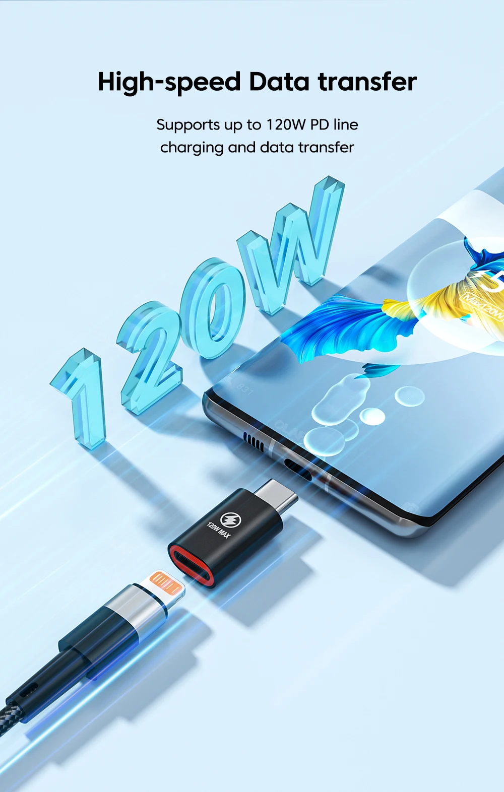 Comprar Adaptador Olaf PD de 120W para iOS Lightning hembra a conector macho tipo c convertidor adaptador de carga PD rápido para iPhone 14 13 iPad