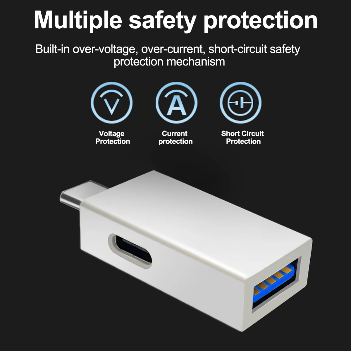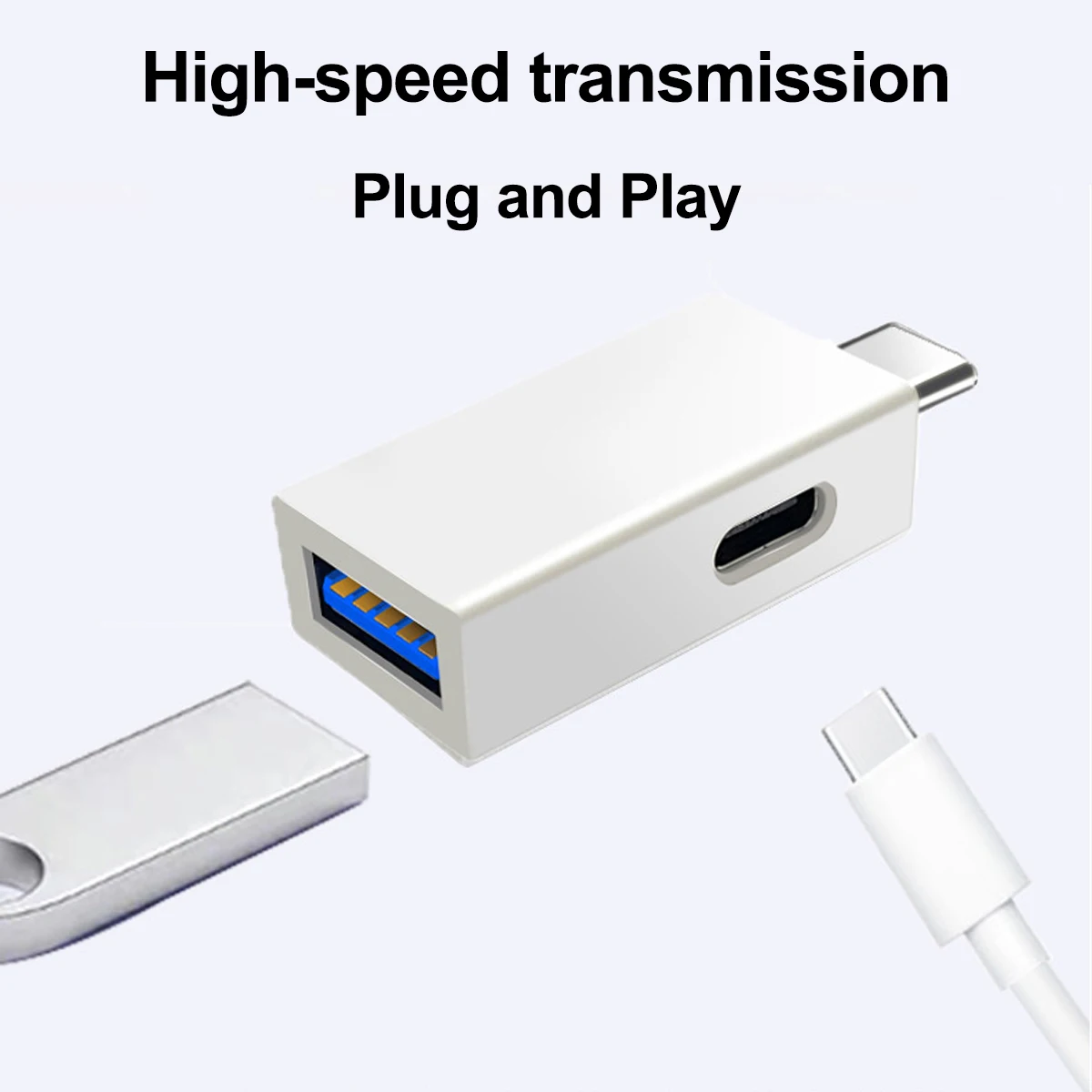 Comprar Adaptador OTG 2 en 1 USB C a tipo C, Conector de carga rápida 3,0, convertidor de datos, puertos duales, Plug and Play, tipo C a USB3.0 2,0