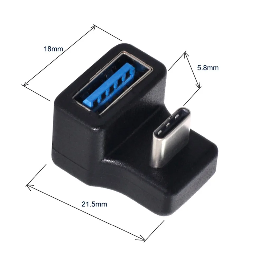 180 grados Up & Down Haaks-C 5,0 OTG a USB Vrouwelijke Uitbreiding adaptador para teléfono móvil y tableta Adaptador Haakse OTG de perfil bajo,. Soporte USB3.0 5Gbps, soporte USB2.0 480Mbps. Gebruikt om OTG en strakke pasvorm toepassingen De usb-C es gastheer y de usb-vrouwelijke es Doel. IKT no tiene teléfono móvil/tableta a través de USB3.0 con reemplazo de teléfono móvil. Kan werken voor de teléfono/tableta con función OTG, Het Kan de USB flash disk, kaartlezer en Muis Enz.,