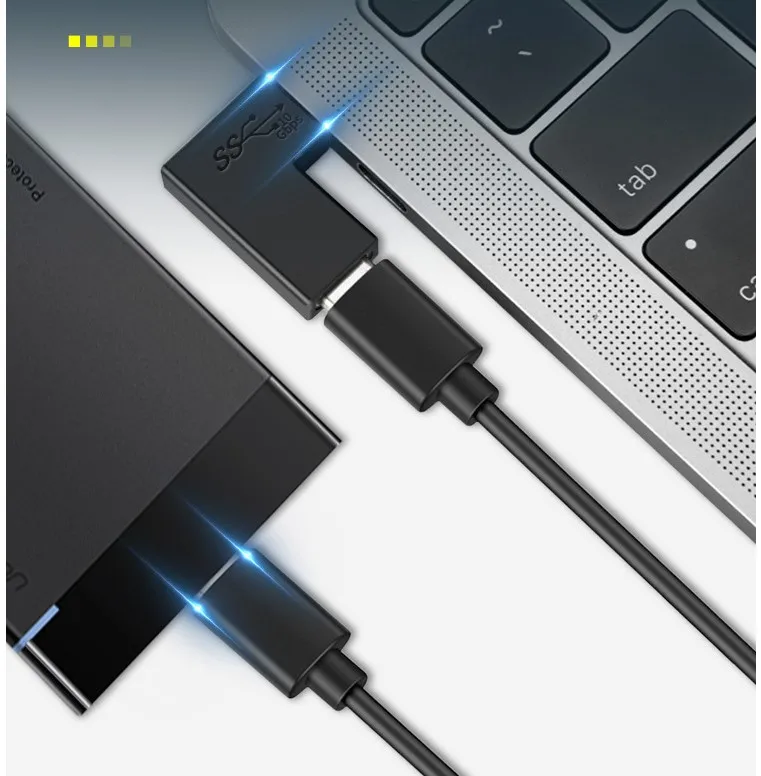 Comprar Adaptador OTG en forma de U para Huawei, Xiaomi, tableta móvil, VR, Mac, 90 grados, USB 3,1, 10gbps, tipo C, macho a hembra, 1 ud.