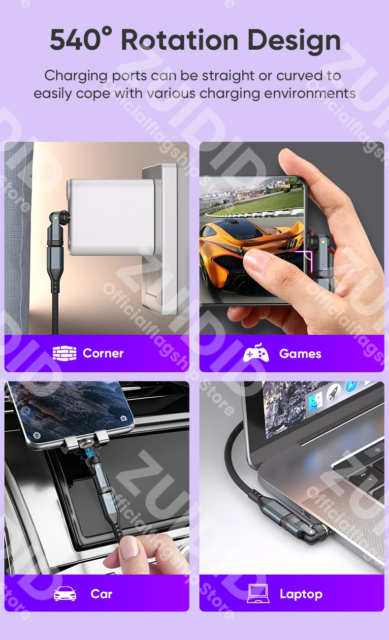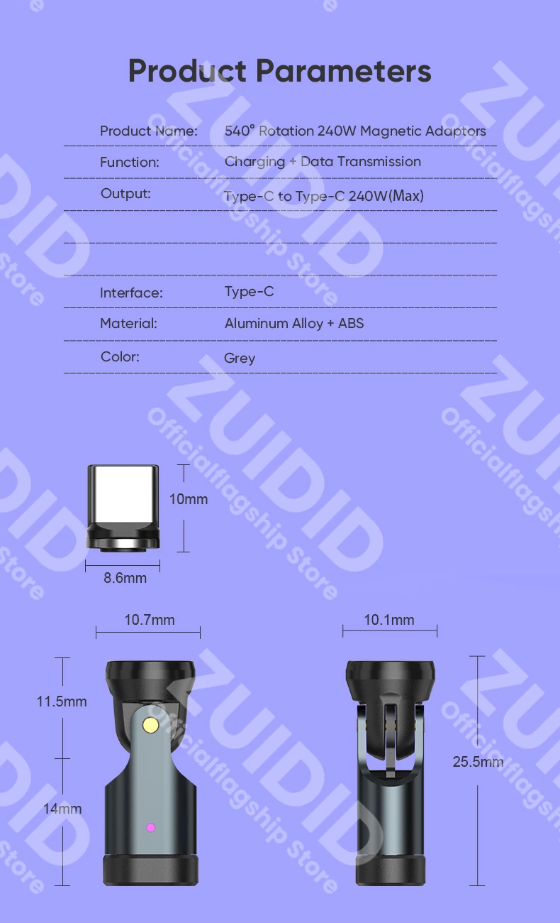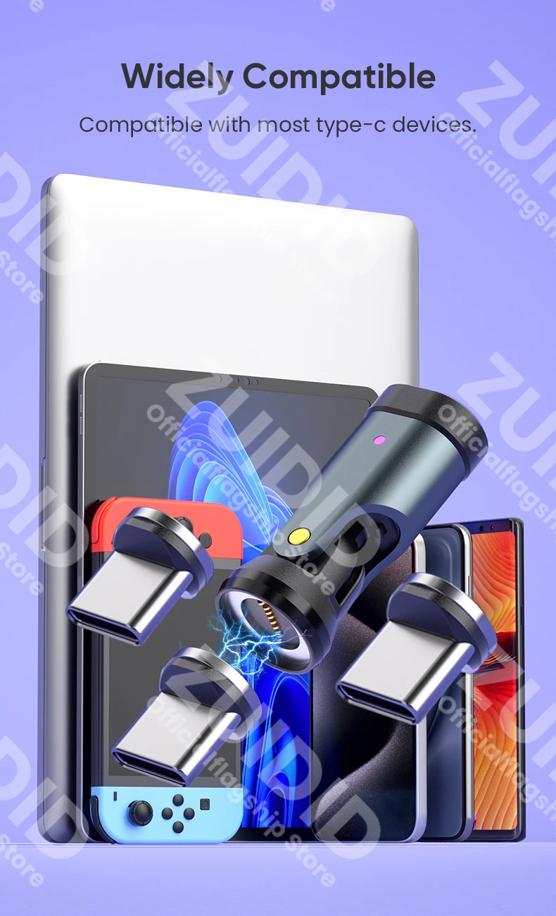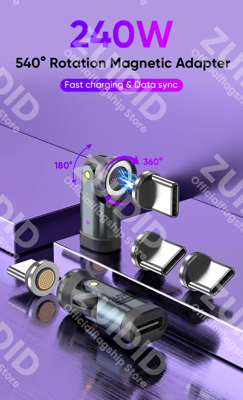 Adaptador OTG magnético USB C a tipo C de 9 pines PD240W USB C convertidor de datos de carga rápida para iPhone 15 16 MacBook Pro Samsung Xiaomi