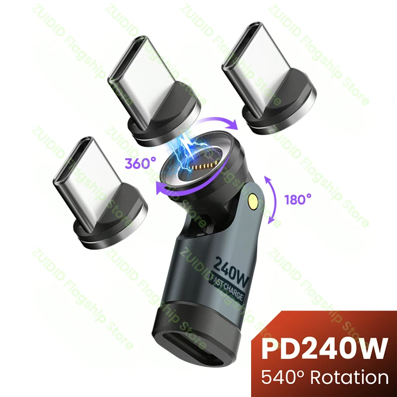 Adaptador OTG magnético USB C a tipo C de 9 pines PD240W USB C convertidor de datos de carga rápida para iPhone 15 16 MacBook Pro Samsung Xiaomi